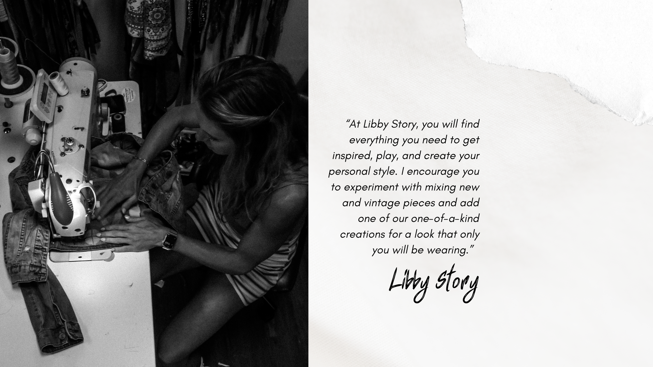 The vision for Libby Story & Company was always more than just a boutique, it was a place for Libby to have artistic freedom, display one-of-a-kind items, and offer women a space to develop their personal style by mixing new and custom pieces for look that truly felt like them.