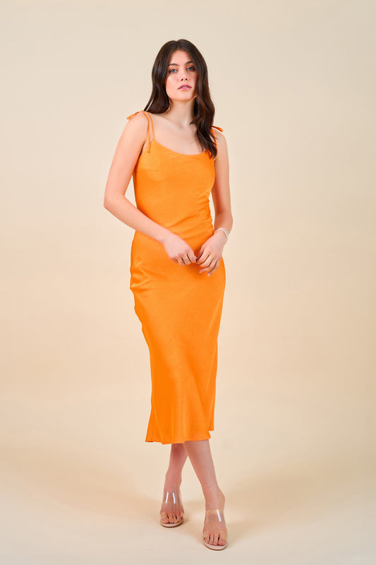 STM SATIN MIDI DRESS WITH LACE TRIM