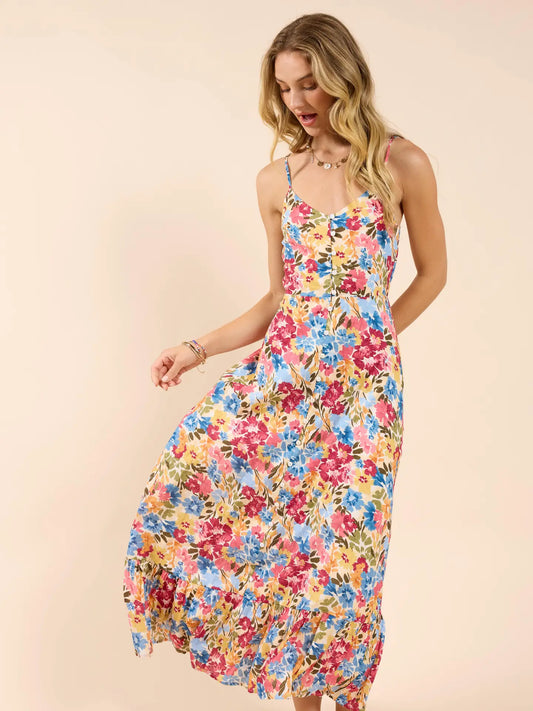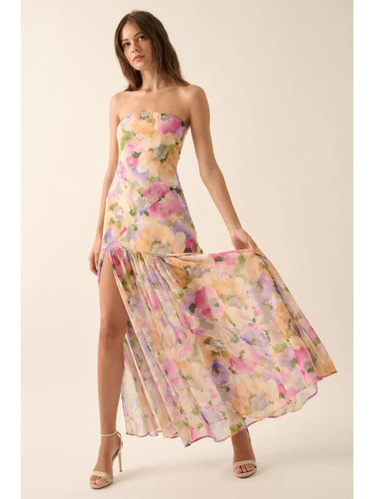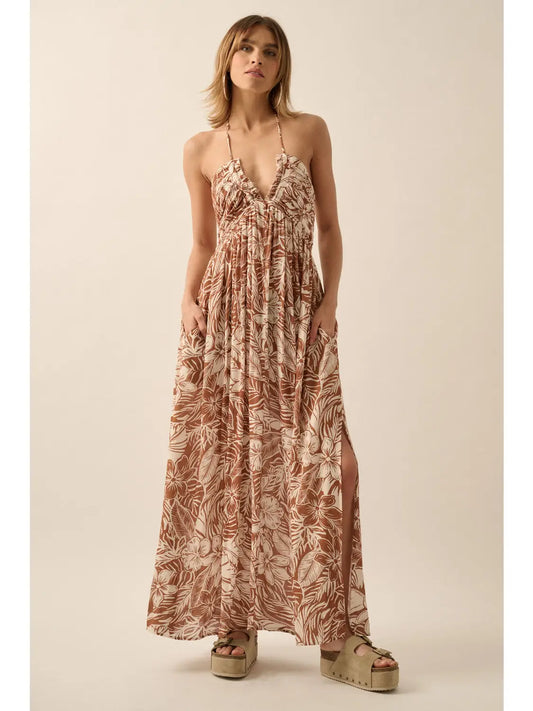 Steve Madden Lara Floral Satin High Neck Maxi Dress