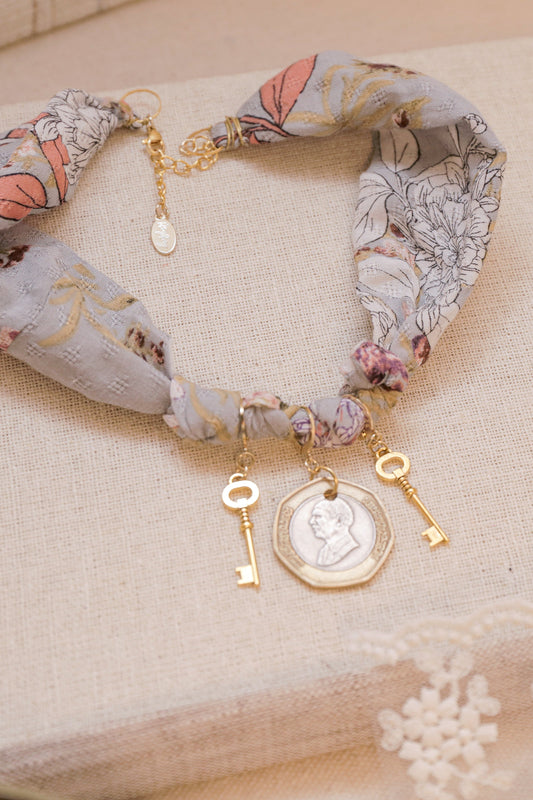 Foreign Coin Fabric Charm Necklace | One-of-a-Kind