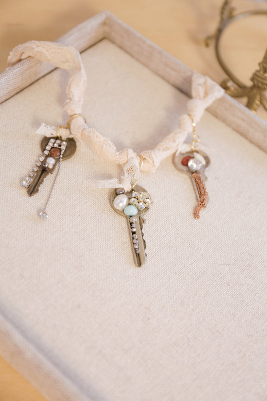 Embellished Vintage Key Lace Necklace | One-of-a-Kind