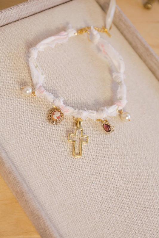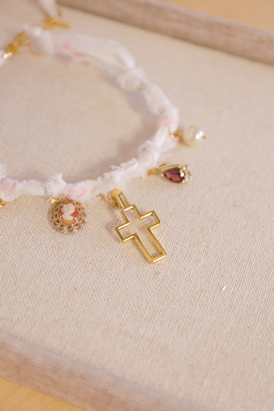 'L' Initial Charm Fabric Necklace | One-of-a-Kind