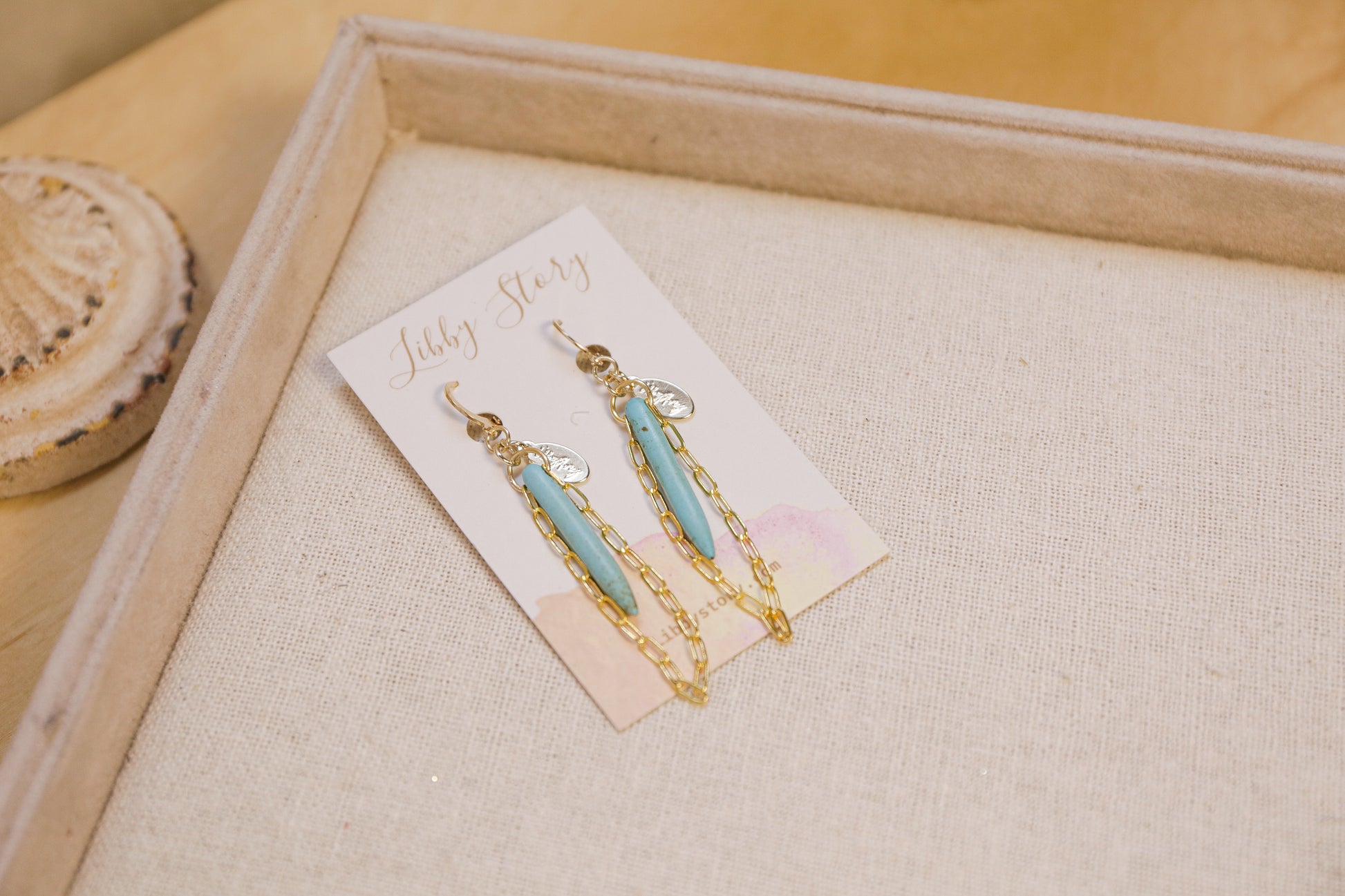 Arizona dyed bone earrings on 18 kt gold filled ear huggies