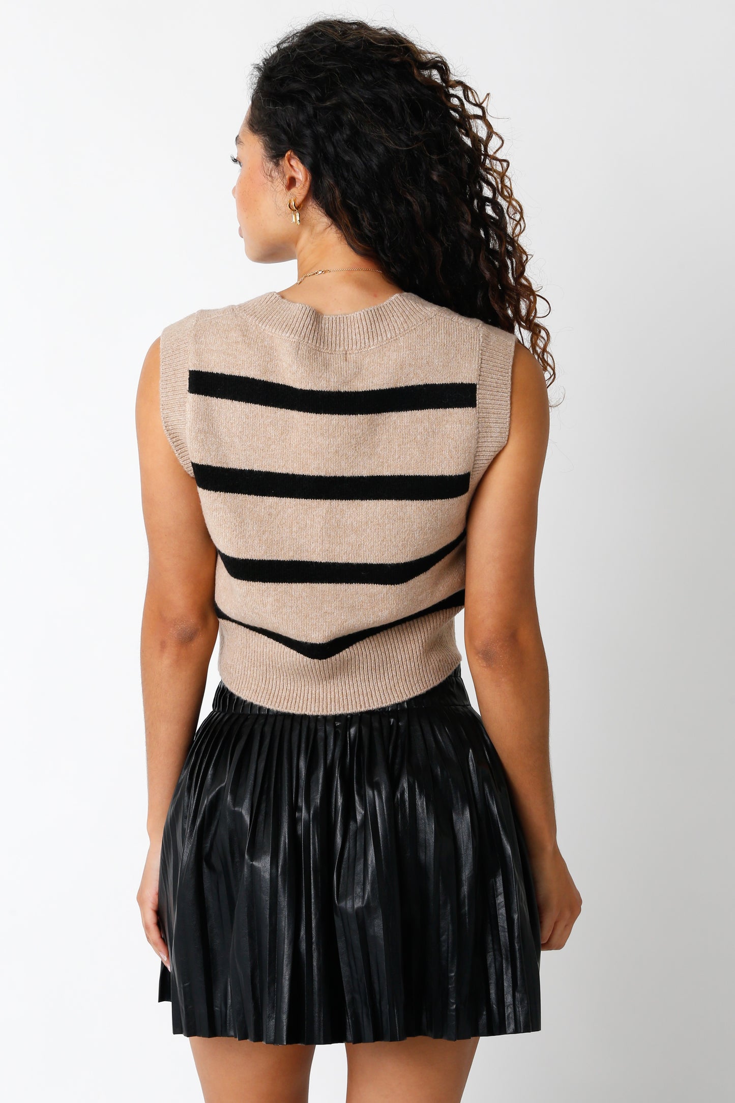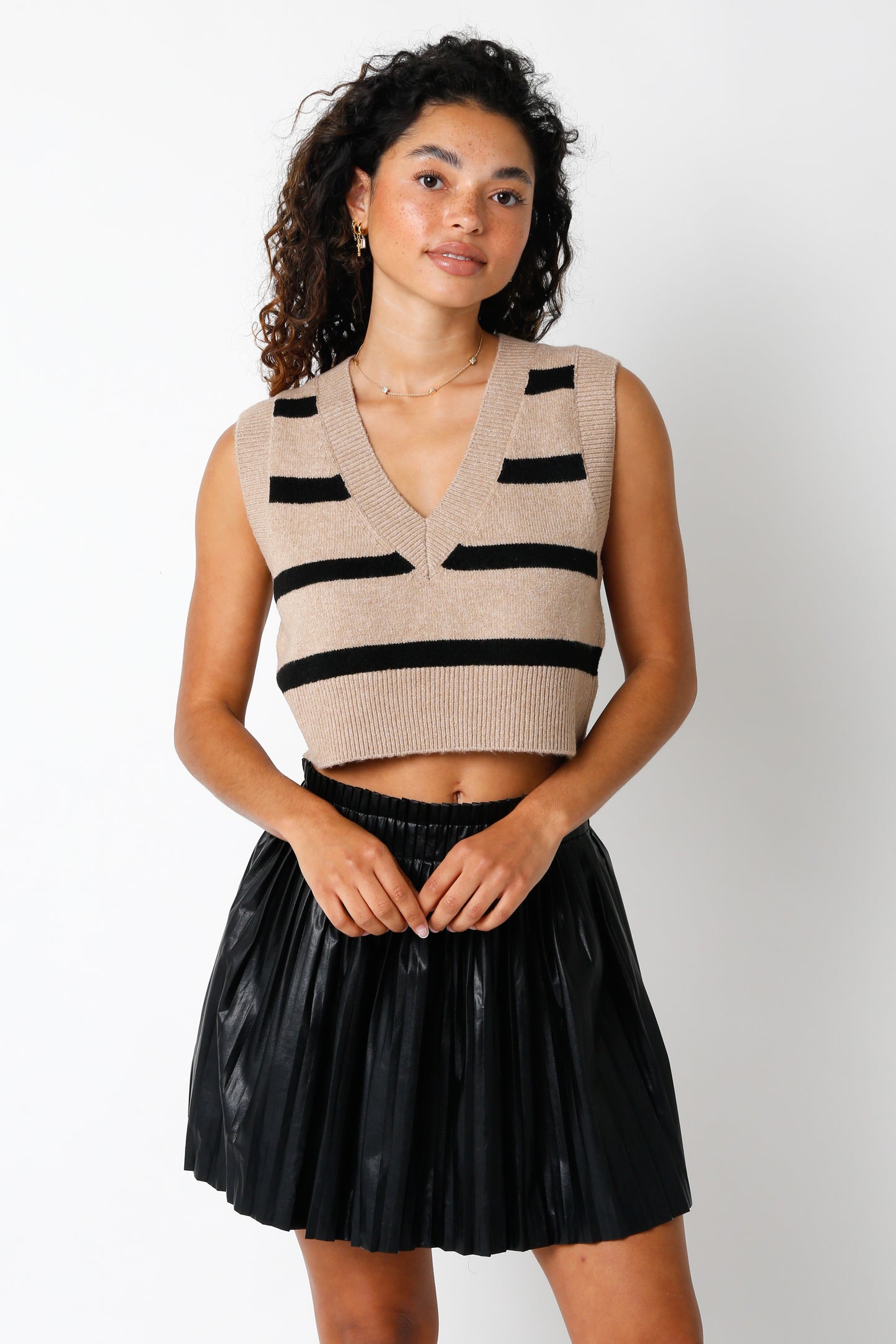 The Cate Mini Vest Sweater features a v-neck and a cropped fit Knit