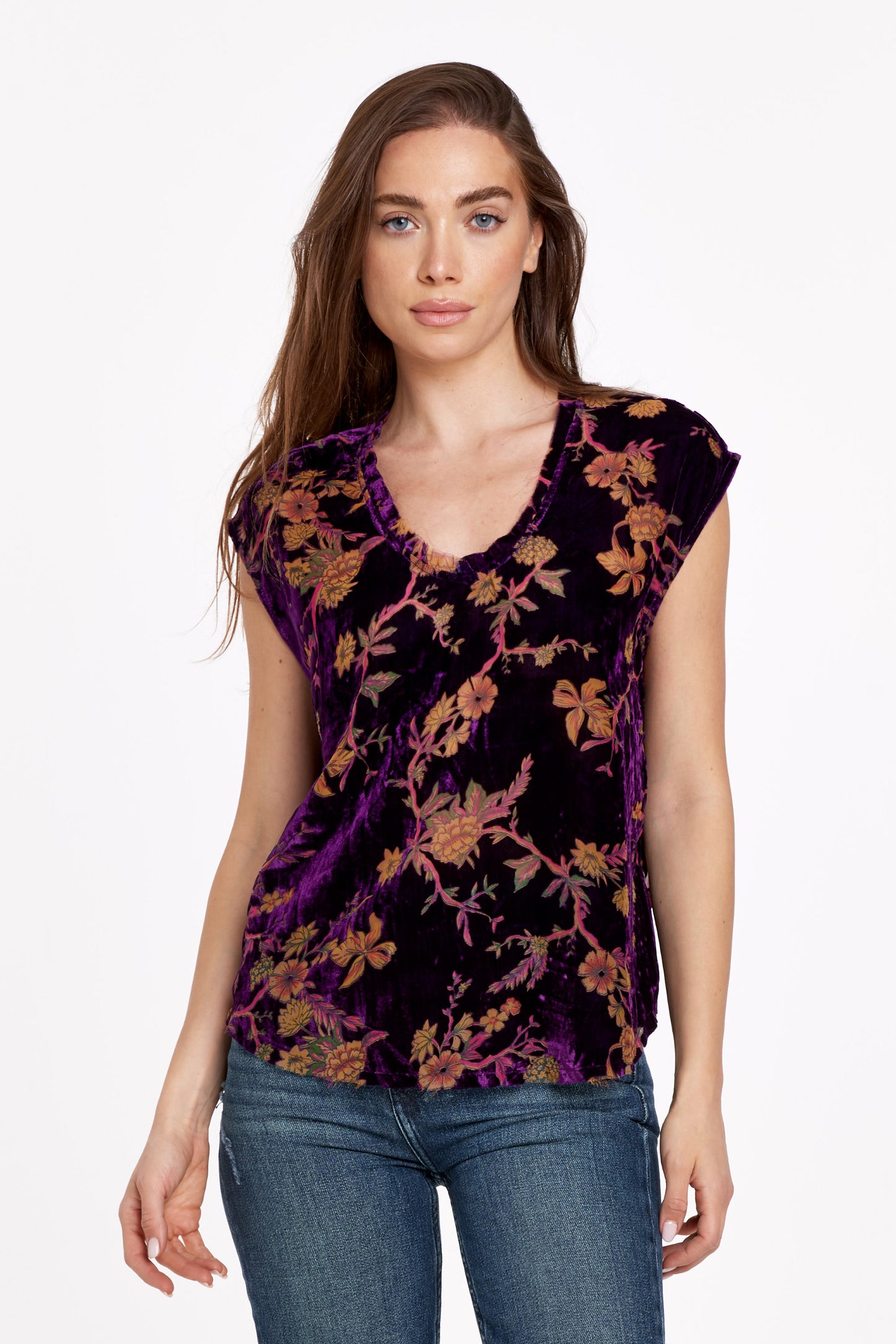DEAR JOHN FLORAL VELVET YANIS TOP