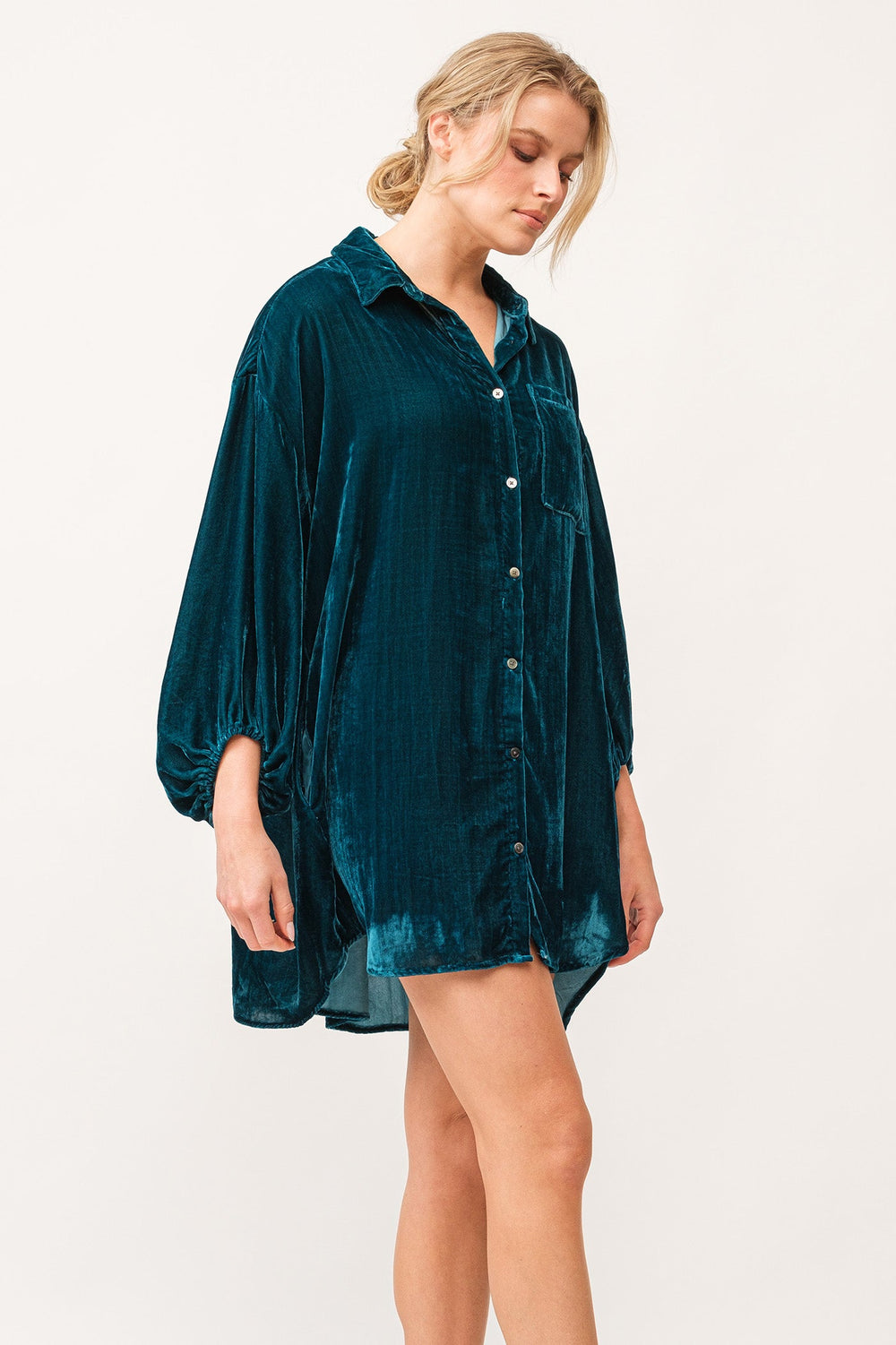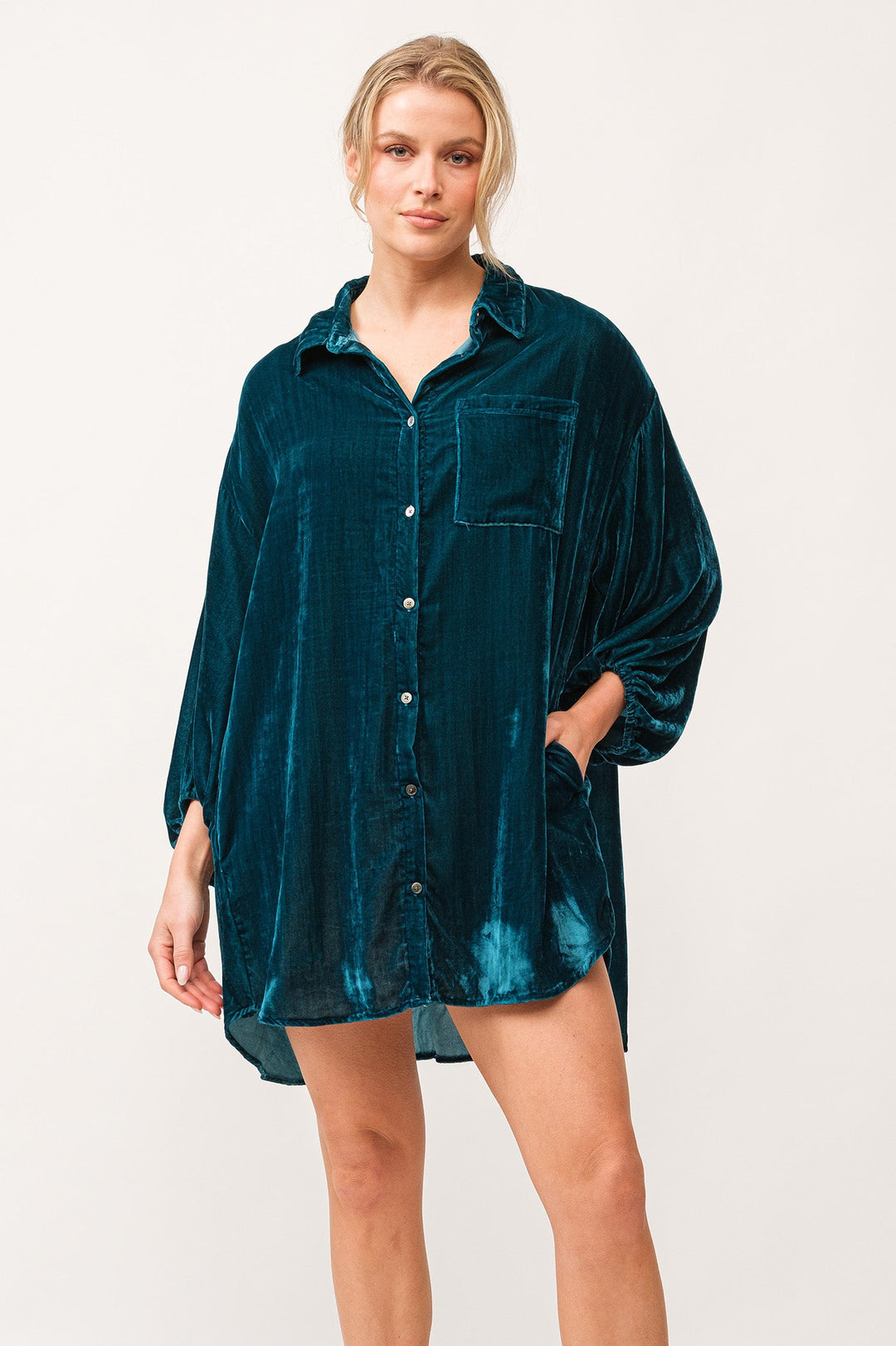 DEAR JOHN LEIGH VELVET BUTTON DOWN TUNIC