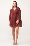 This chic Leigh button-down 3/4 sleeve mini dress in velvet blends elegance and everyday practicality. Featuring a relaxed fit flattering button-down front, this dress ensures you look effortlessly refined. Its three-quarter sleeves offer the perfect balance of coverage and freedom, making it versatile for any season. Whether for casual outings or dressed-up occasions, this piece provides unbeatable comfort and timeless style.