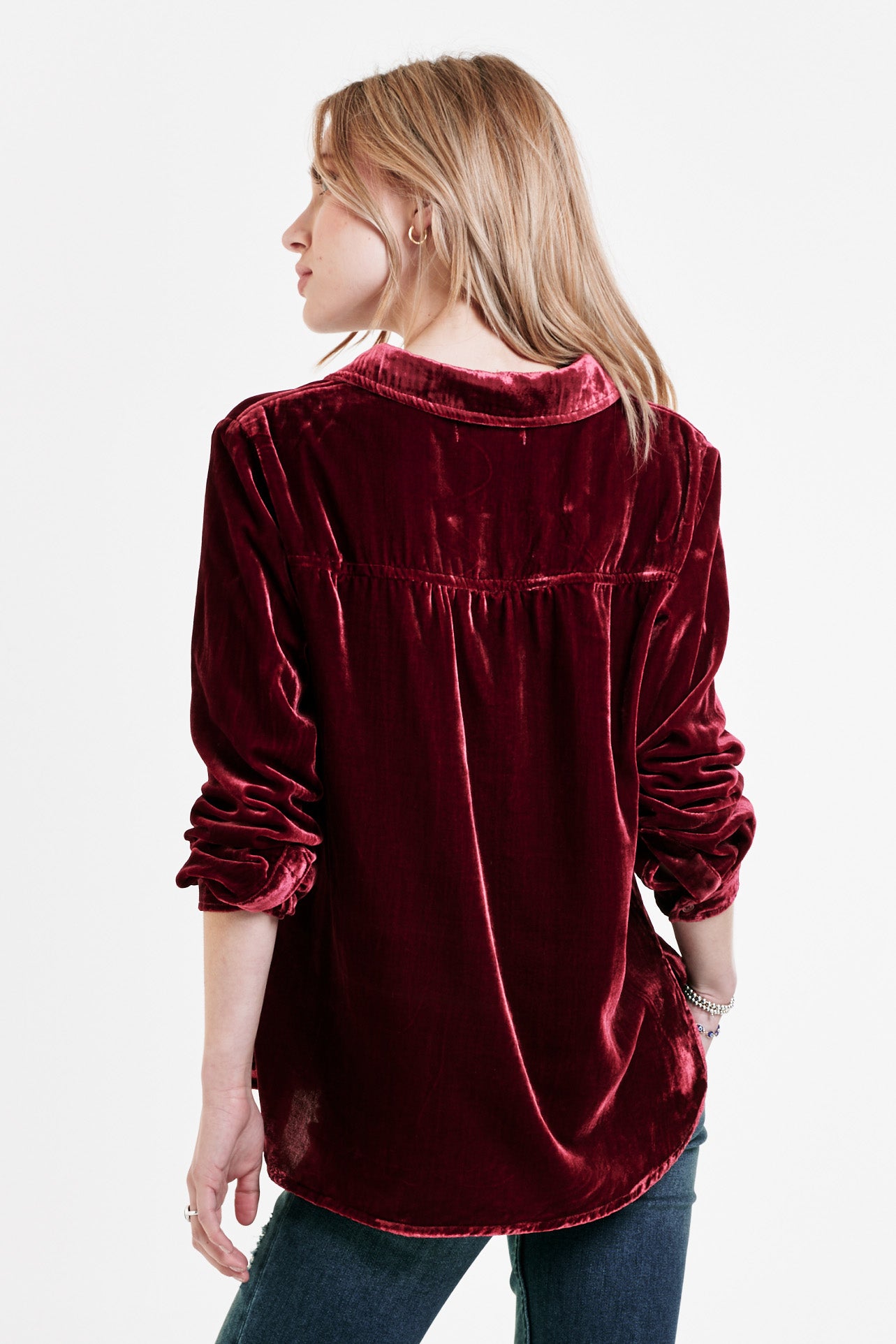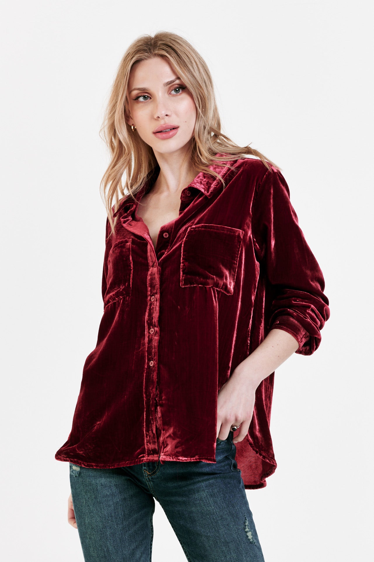 BUTTON DOWN LONG SLEEVE RELAXED FIT TOP 65% RAYON, 35% NYLON