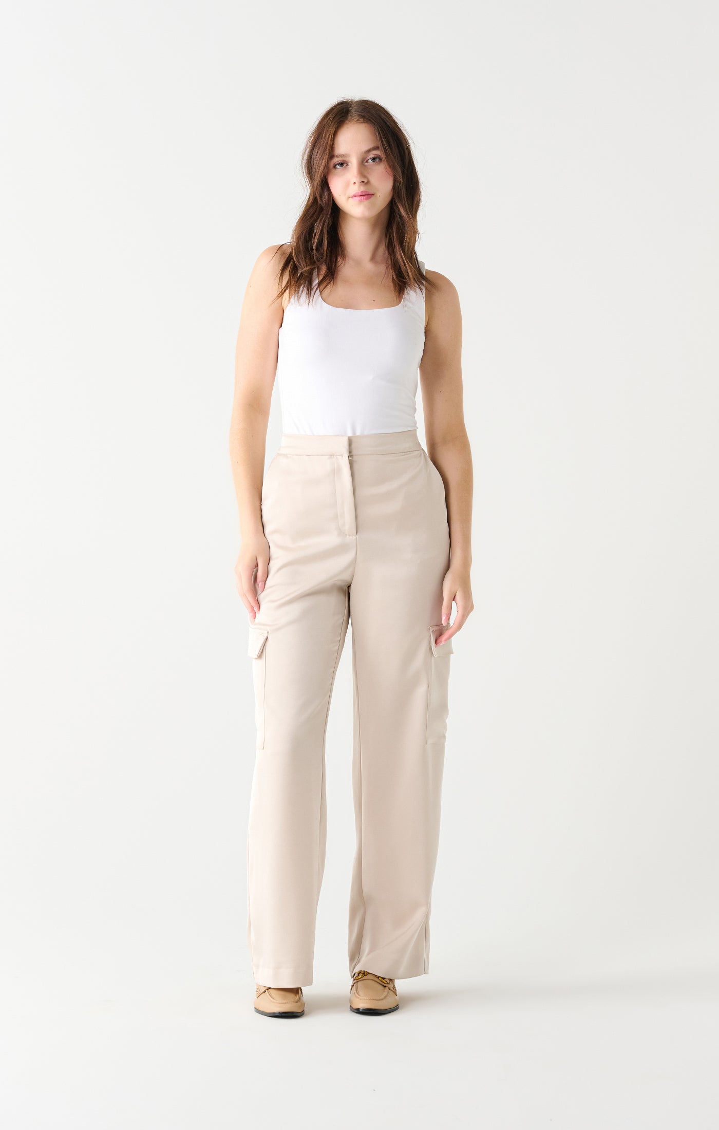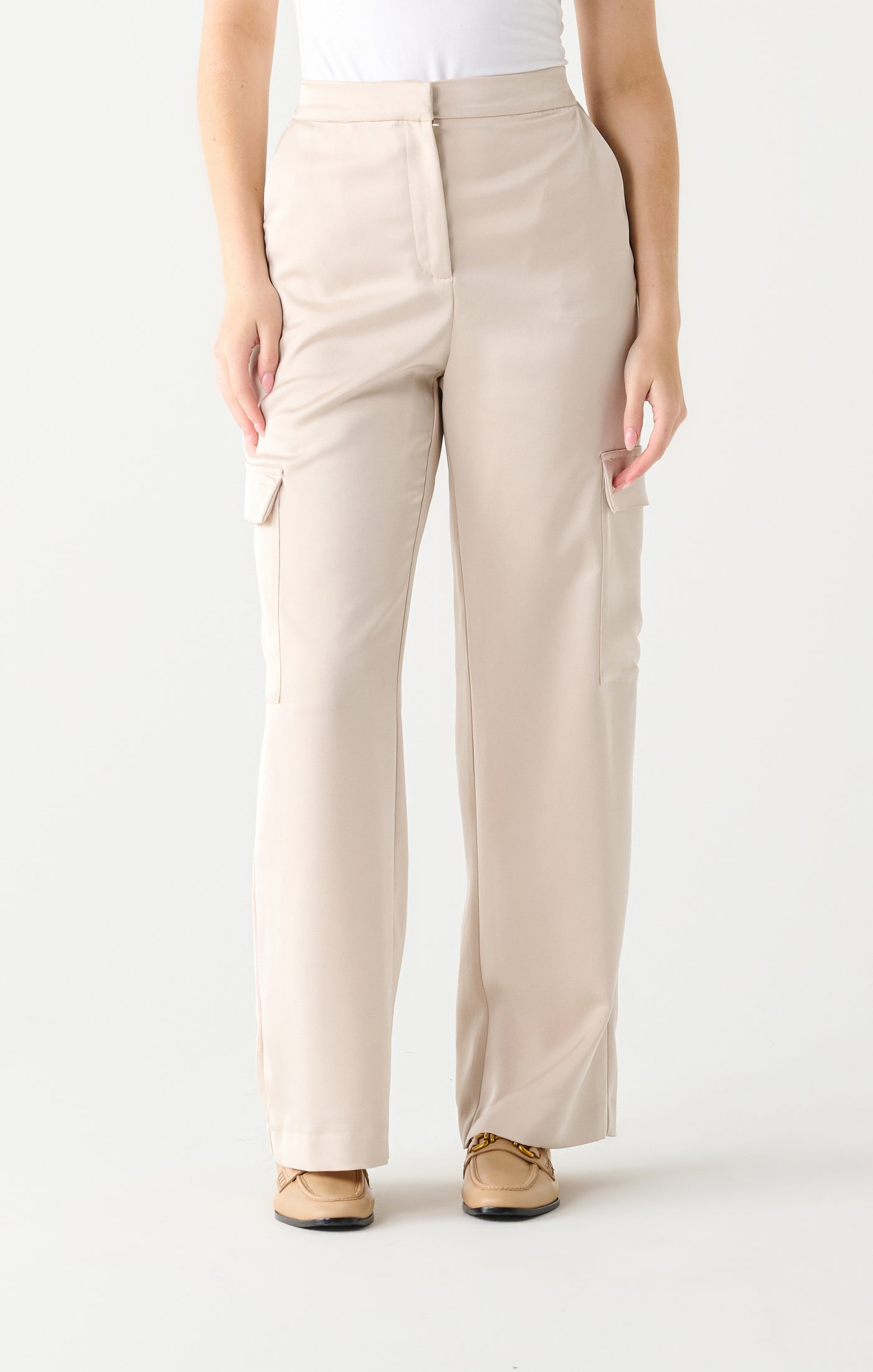 HIGH WAIST SATIN EFFECT CARGO PANT