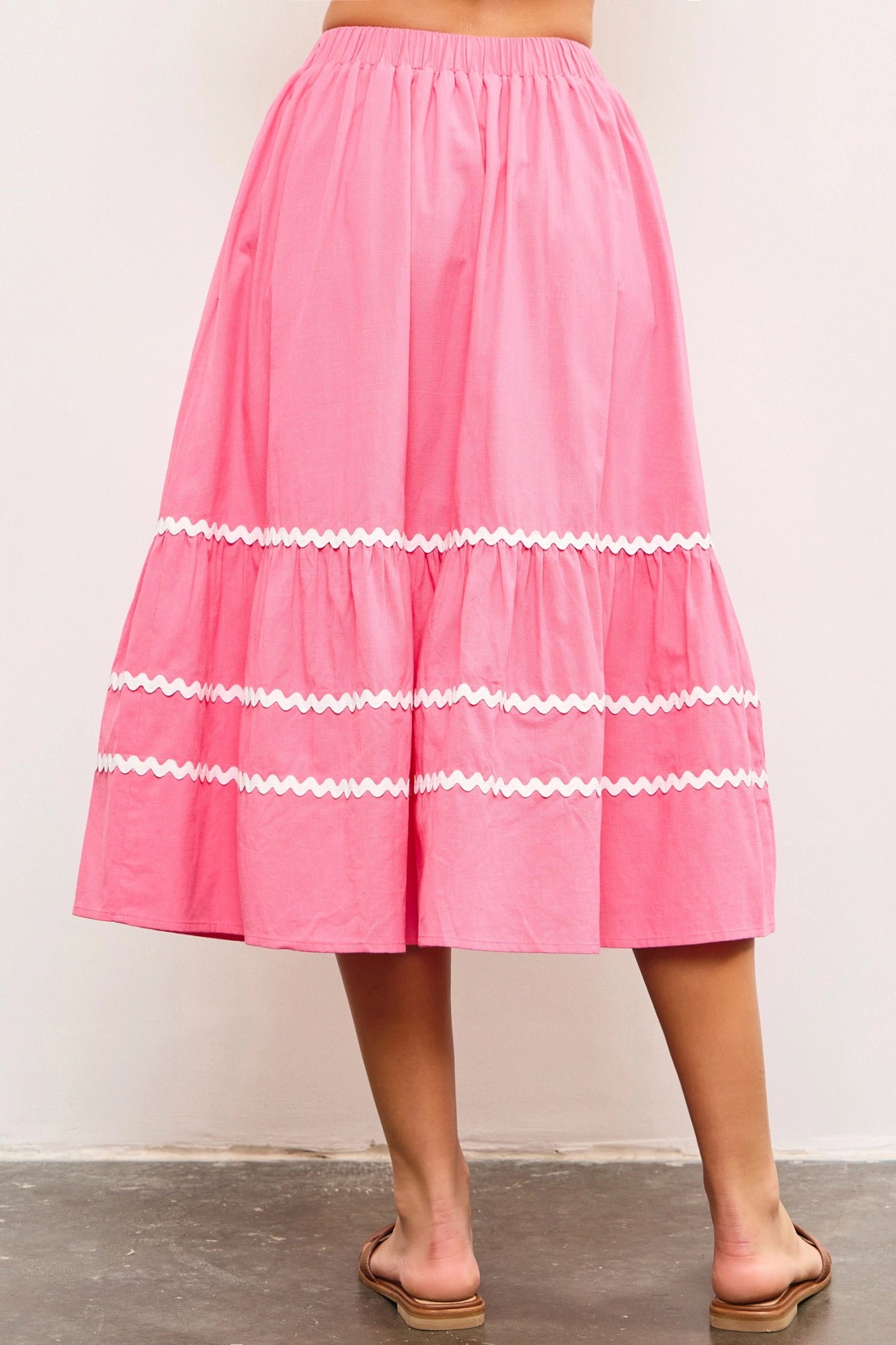 Elastic Waistband Scallop Trim Detail Shirred Skirt