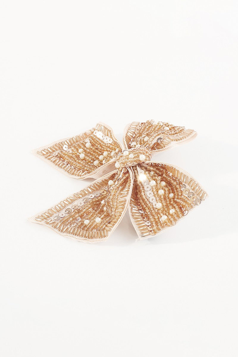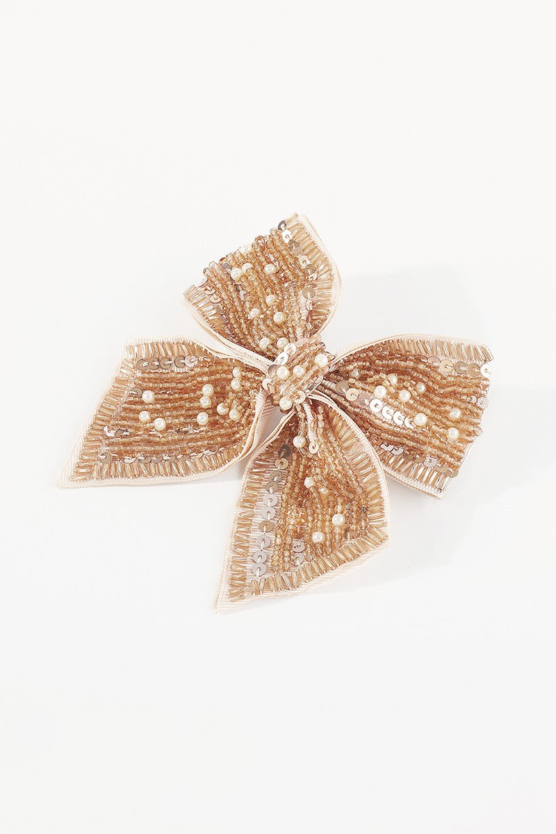 Fancy Bow Knot w/ Pearl Beads Hair Clip Barrette