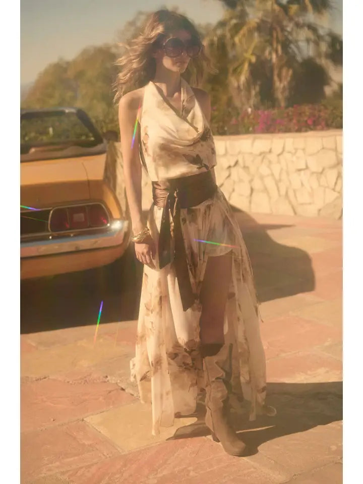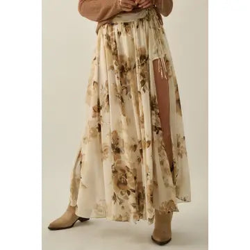 Let the golden hour meet your every step in our Floral Print Chiffon Maxi Skort, where soft, flowing chiffon whispers stories of sun-drenched afternoons. Adorned with a dreamlike, diffused floral print and cinched by a chic contrasting tie-waist, this elegant maxi skort offers the grace of a skirt with the effortless freedom of wide-leg trousers. Designed for the woman who creates her own world, it's a piece that invites authentic moments, blending nostalgic warmth with an urban edge for unparalleled comfort and style.