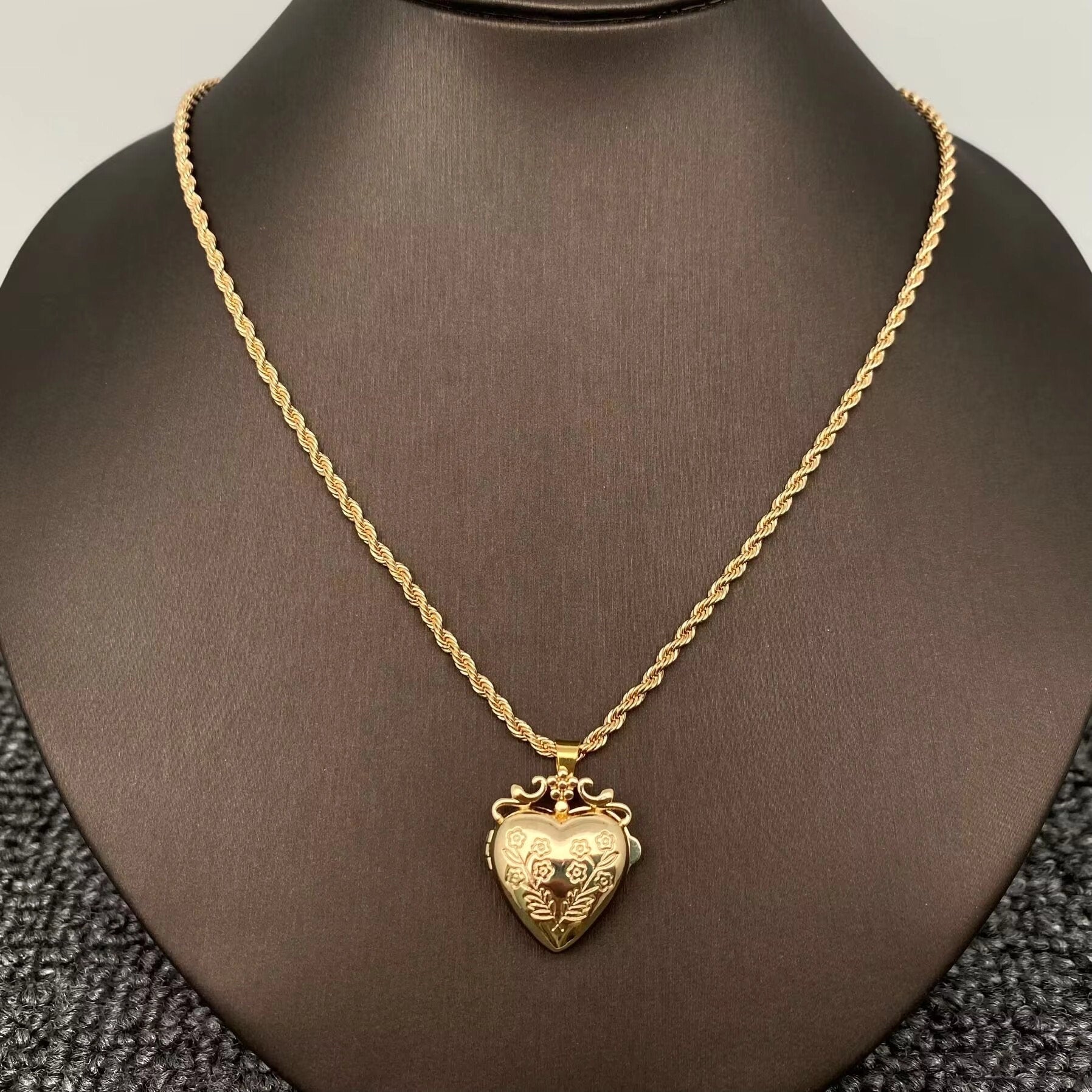 Flowers Heart Locket Gold-Plated Necklace
