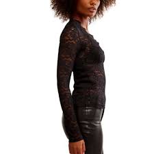 FREE PEOPLE ALL DAY LACE LONG SLEEVE VNECK TOP