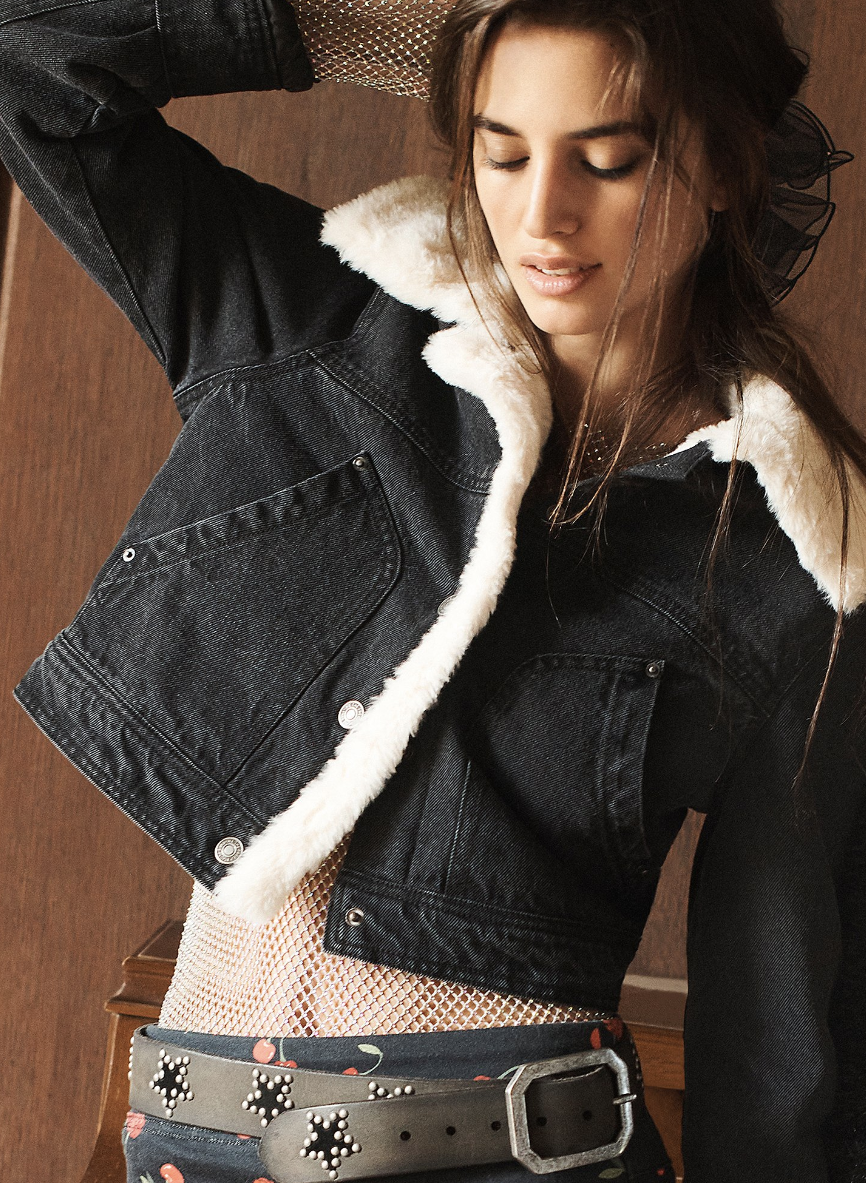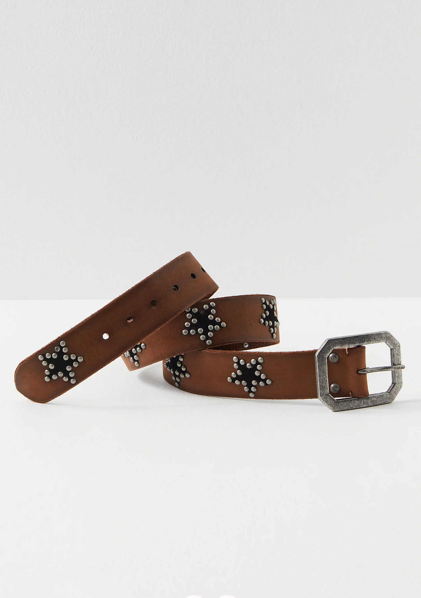 Add necessary embellishment to any look with this soft leather belt, featured in a medium width with studded stars and a classic buckle closure.