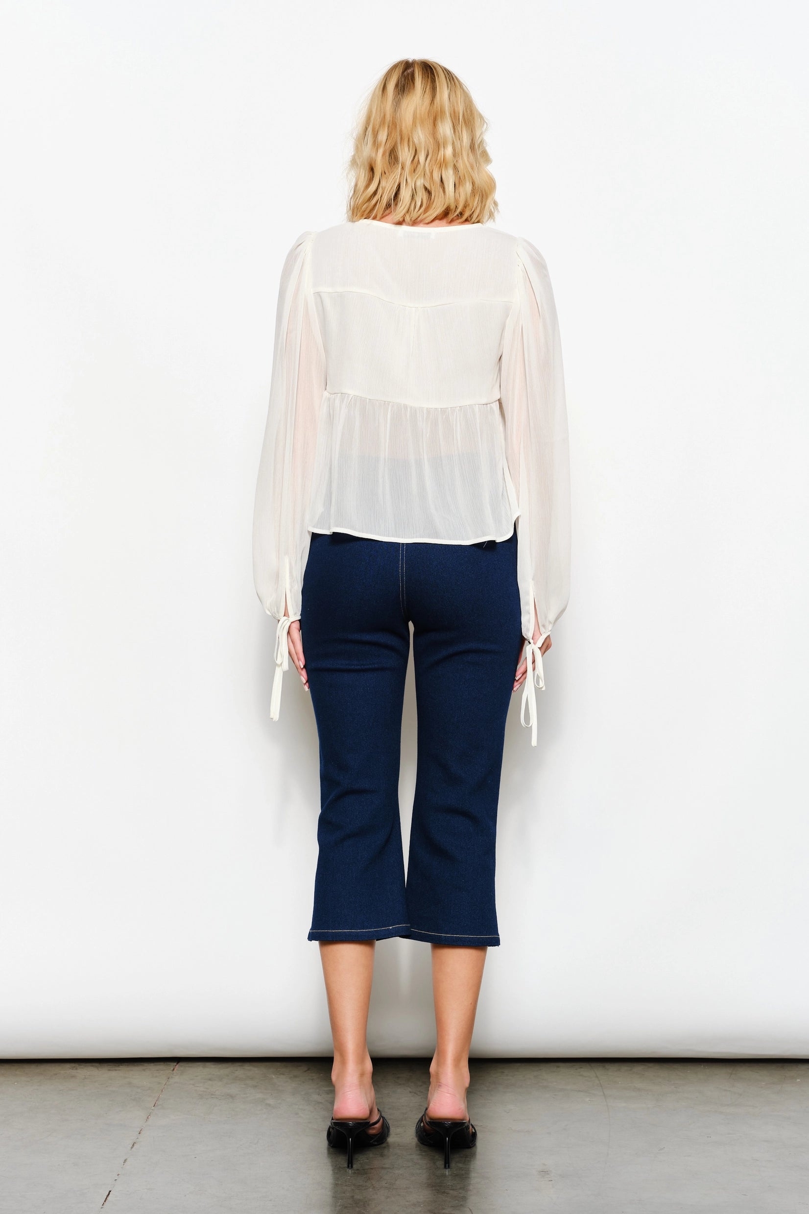 Float through your day in the Gabrielle Ruched Blouse—romantic, light, and effortlessly charming! This blouse is all about dreamy details and feminine flair.