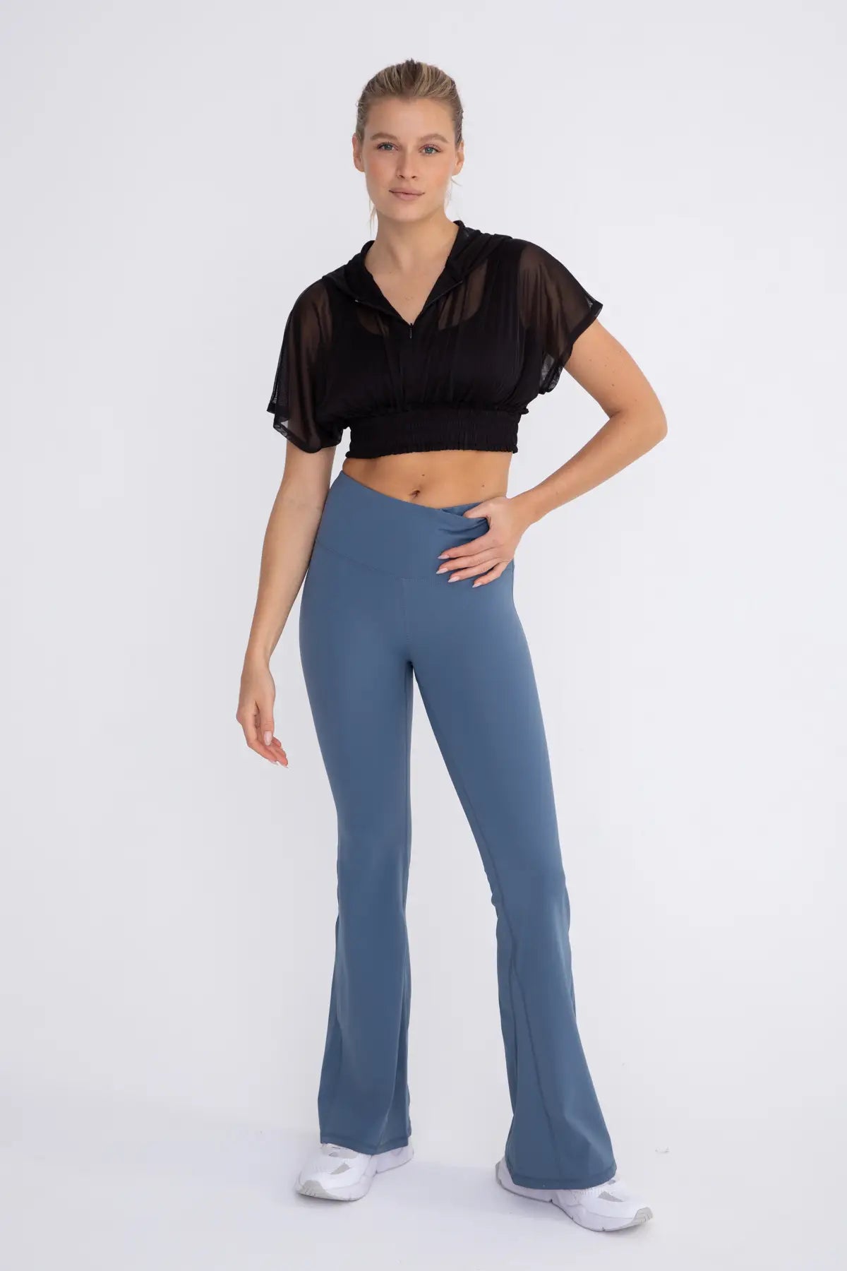 Flare leggings are flattering, this is a known fact. They give the hourglass silhouette to the wearer. These particular leggings have a wider flare in the bottom as well as a discreet pouch on the inner side of the front waistband.
