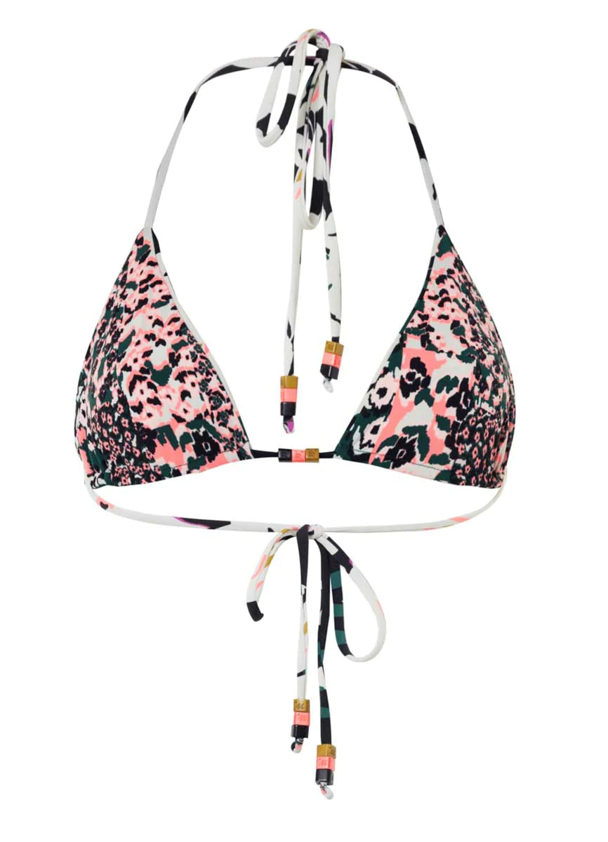 Balmy, where have you been all our lives? The perfect sliding triangle bikini top for summer vacations. With adjustable straps that tie at the neck and back and its low coverage, this bikini top is a must for every girl!