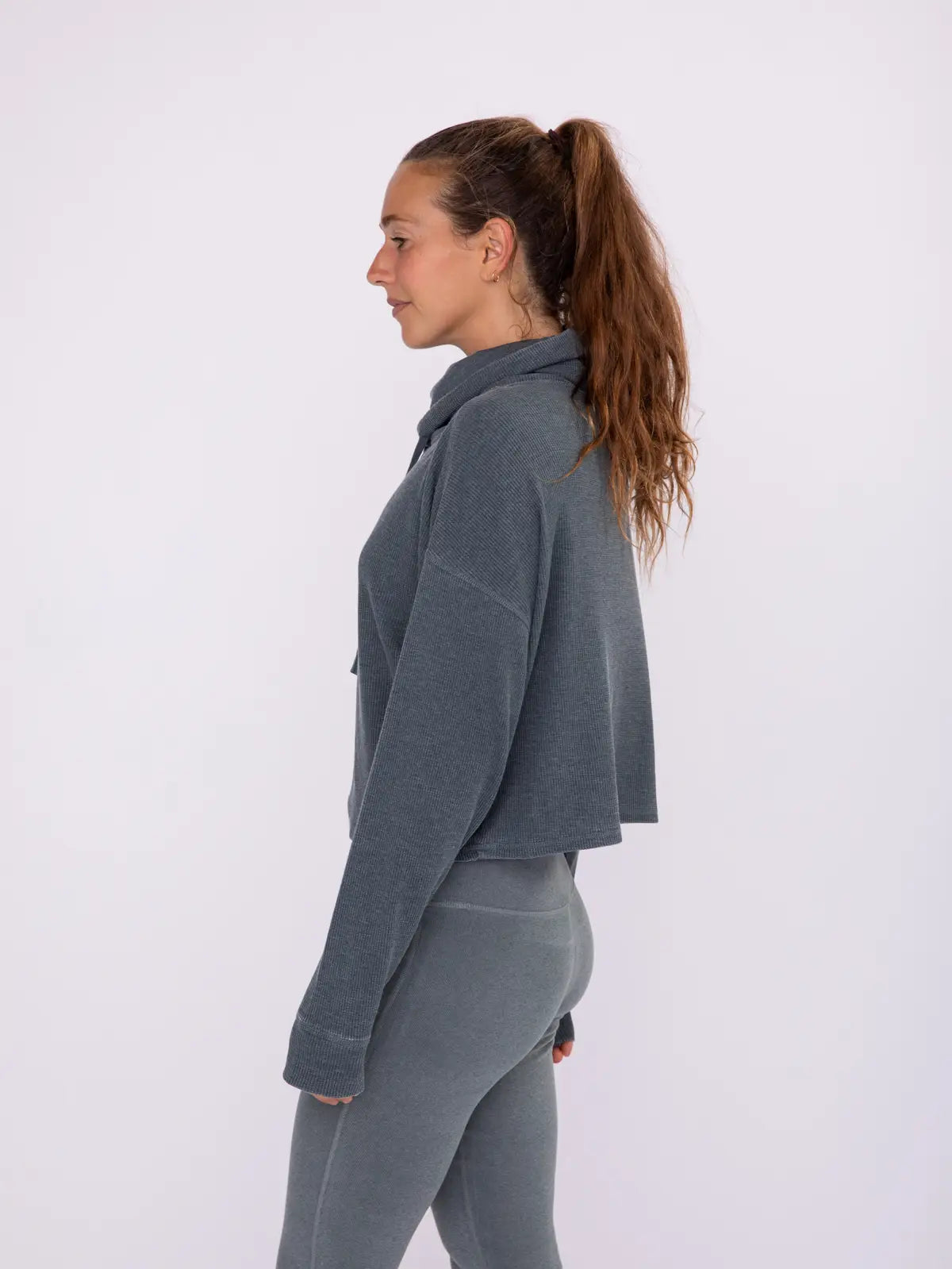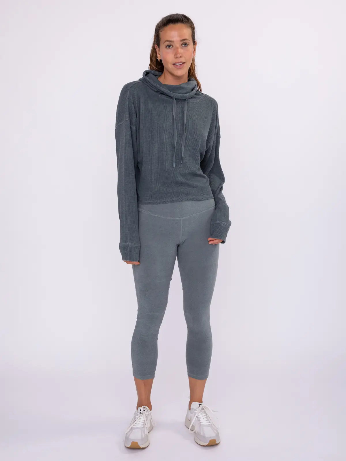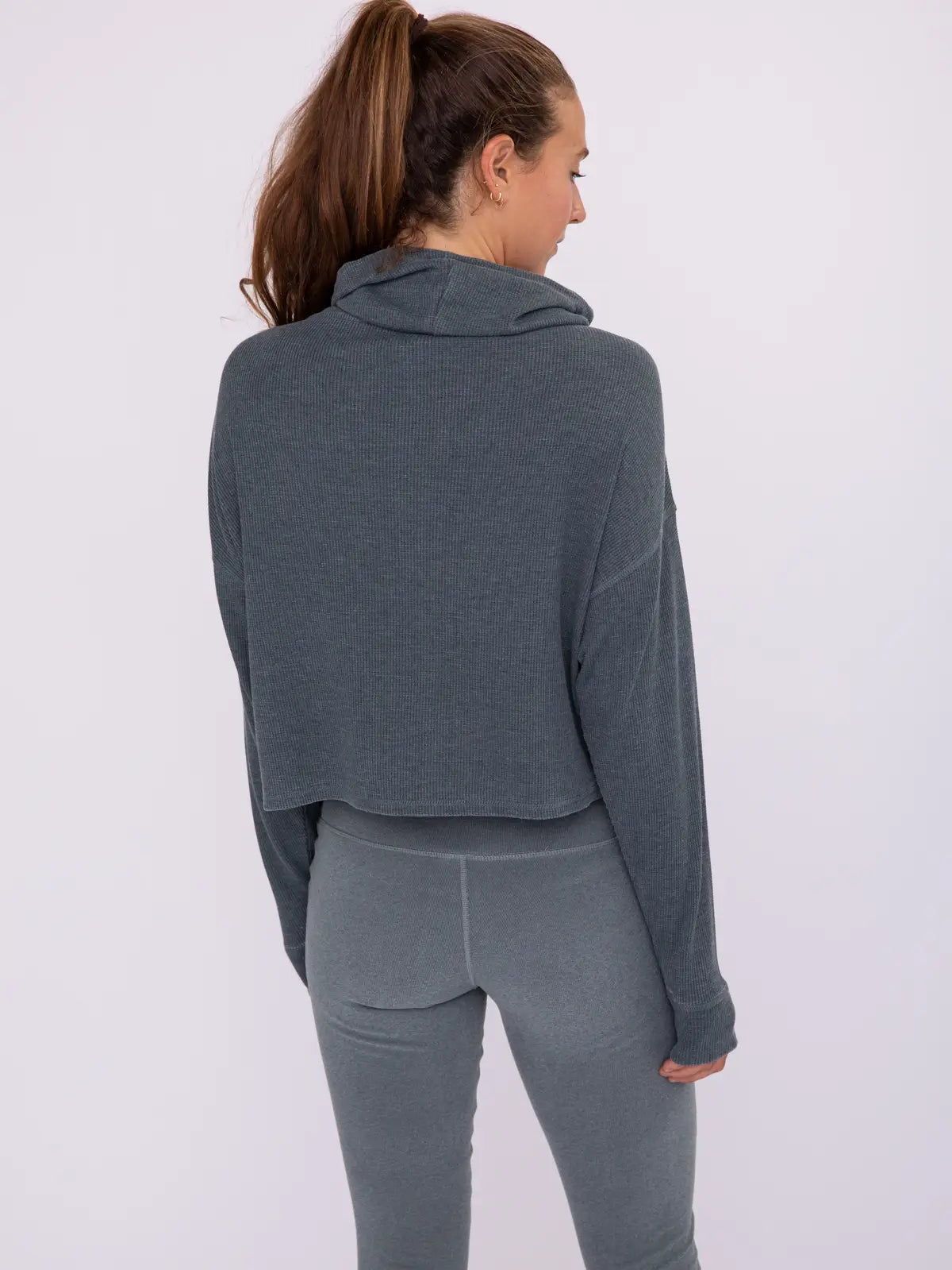 Mineral Washed Waffle Knit Cowl Neck Pullover