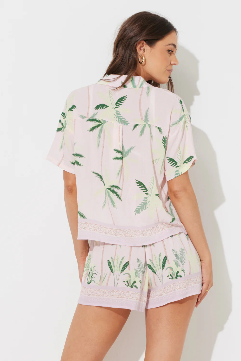 Ocean Drive Palm Printed Rayon Crinkle Camp Shirt