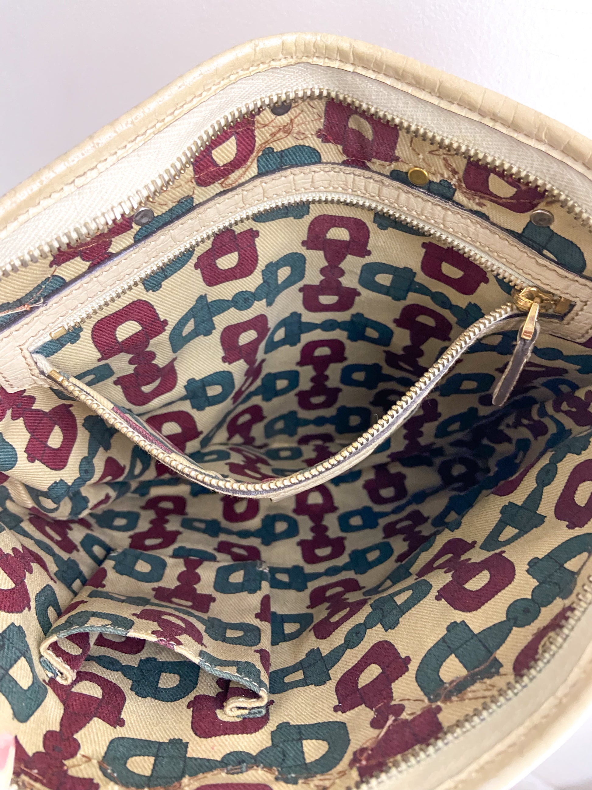Authentic vintage Gucci purse refurbished and upcycled with pearls, rhinestones, embroidered patches, purse chain and a chain strap that can be worn crossbody or doubled up and word shorter