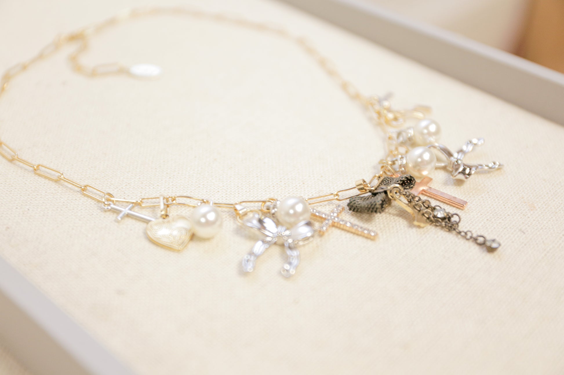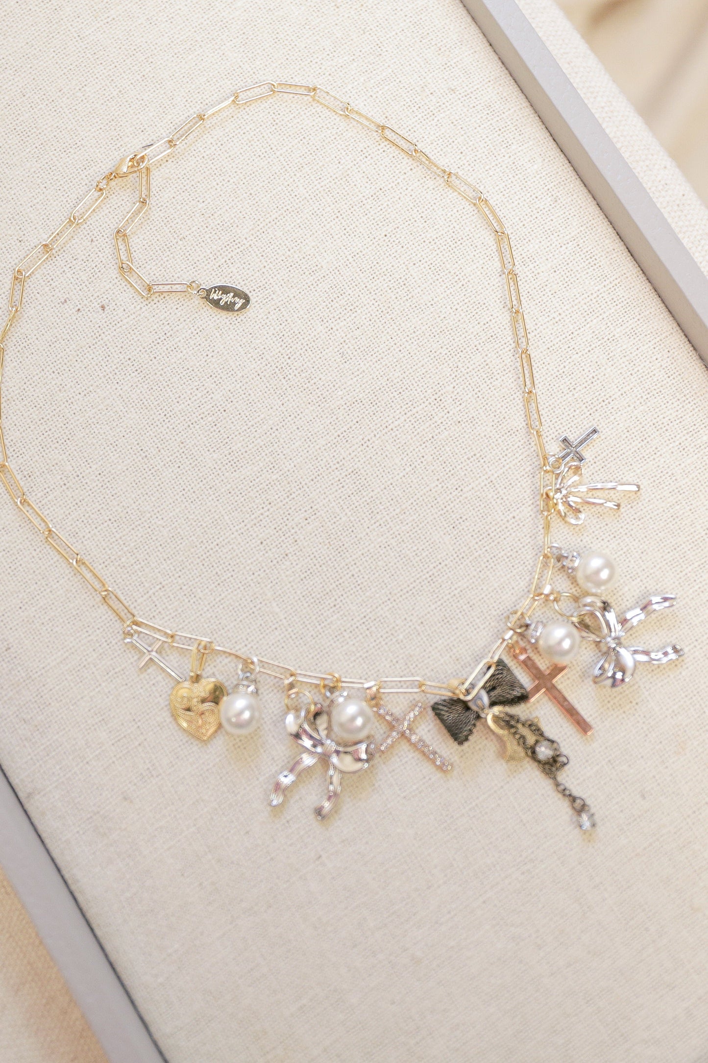 OOAK Bow and Cross Charm Necklace