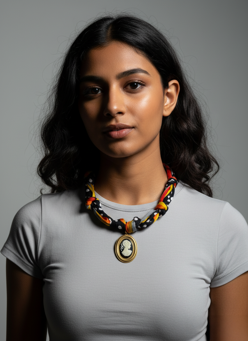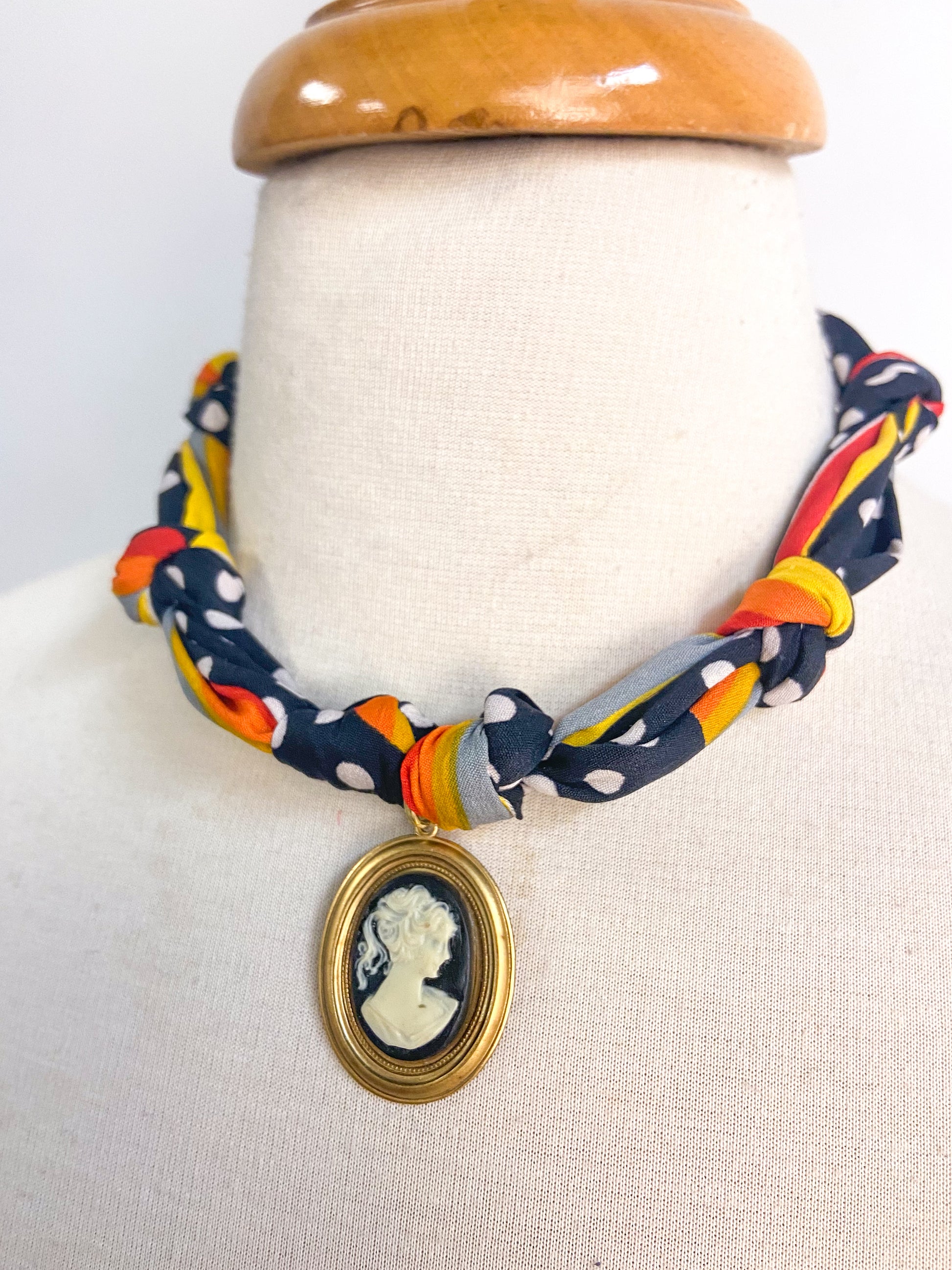 OOAK Cameo Dot Scarf Necklace