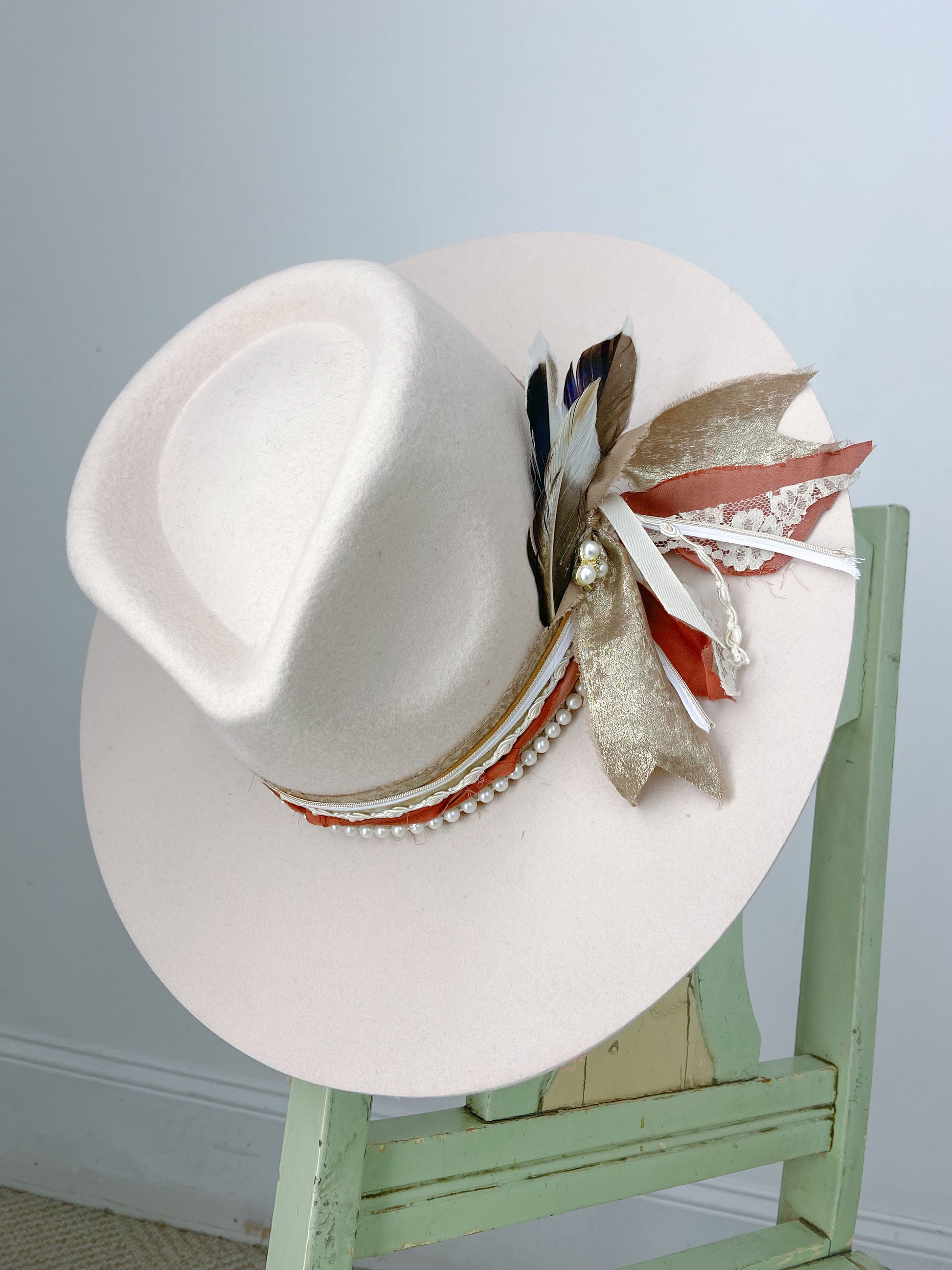 OOAK Champagne Dreams 100% Wool & Ribbon Stiff Bring Hat