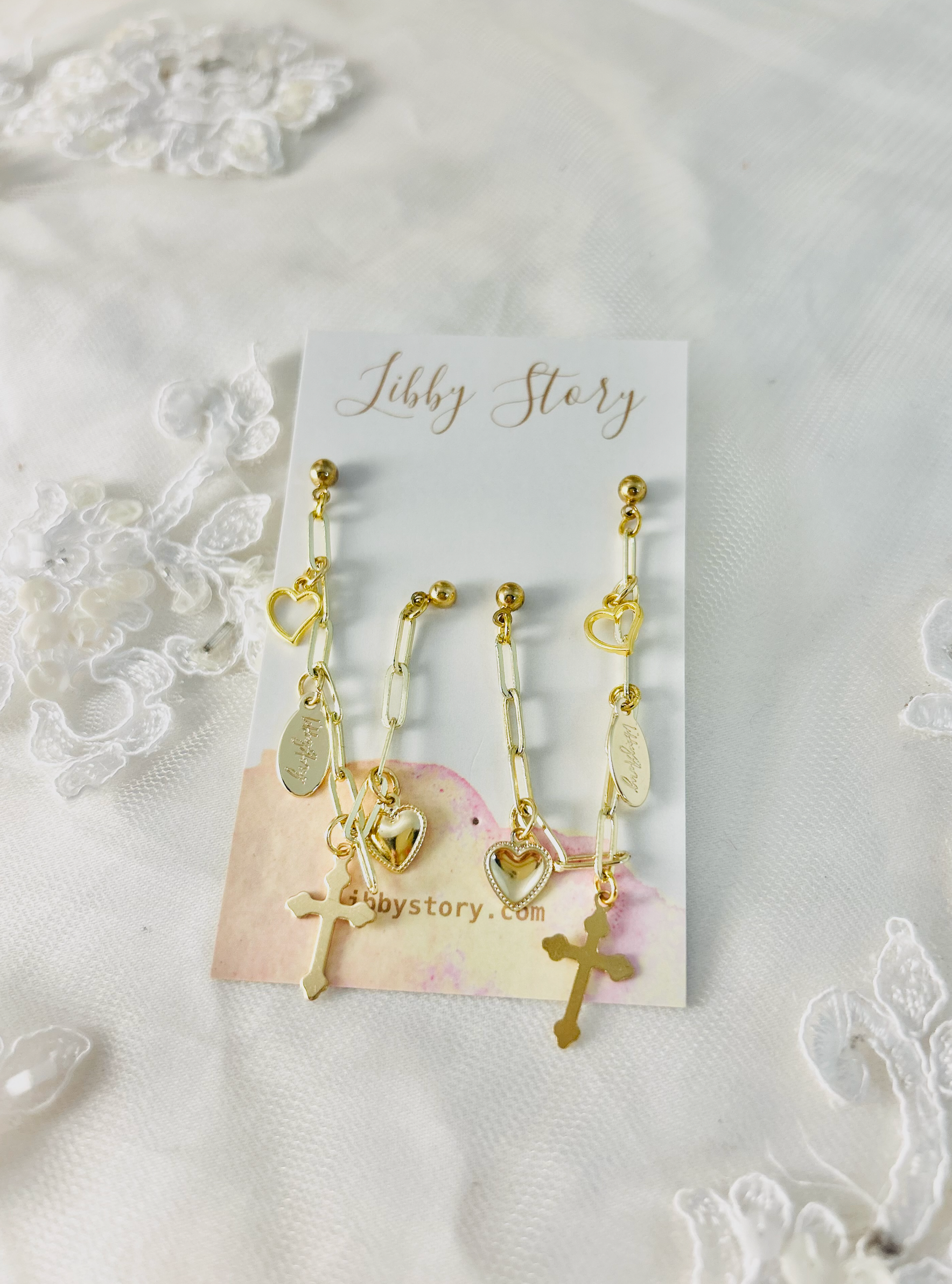 Double Stud Earrings w/Charms + Chain