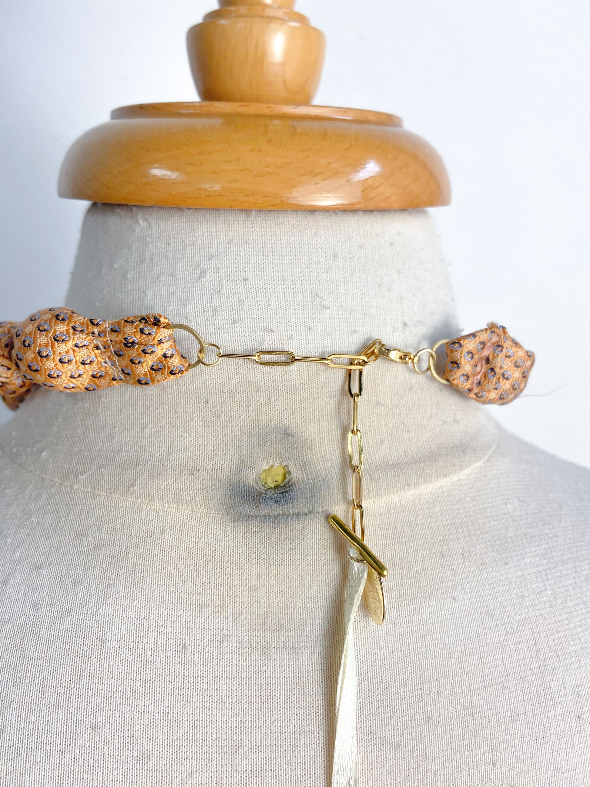 100% Silk Necklace knotted over round beads with a large shell pendant