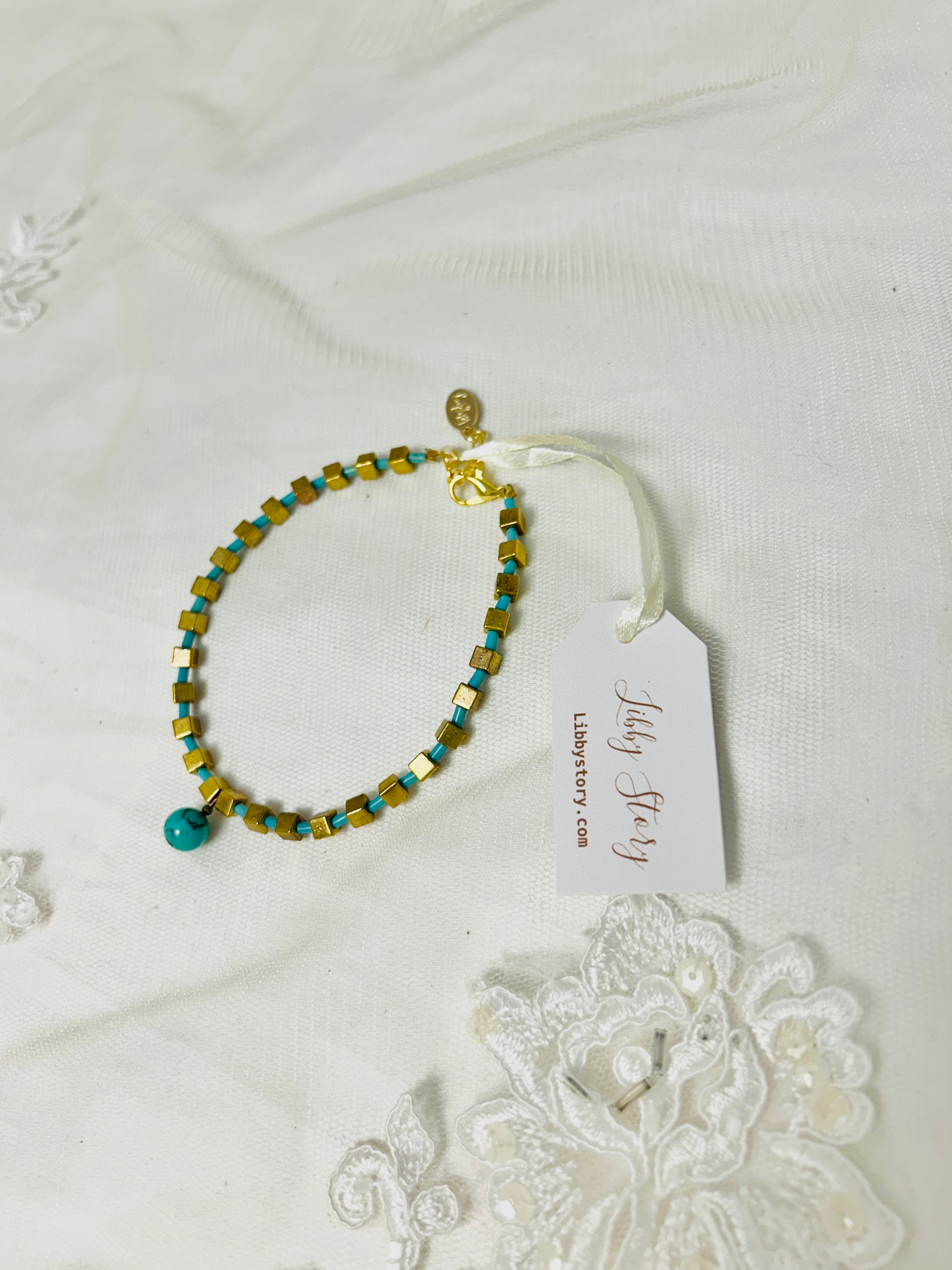Gold plated brass beads with turquoise beads and turquoise pendant