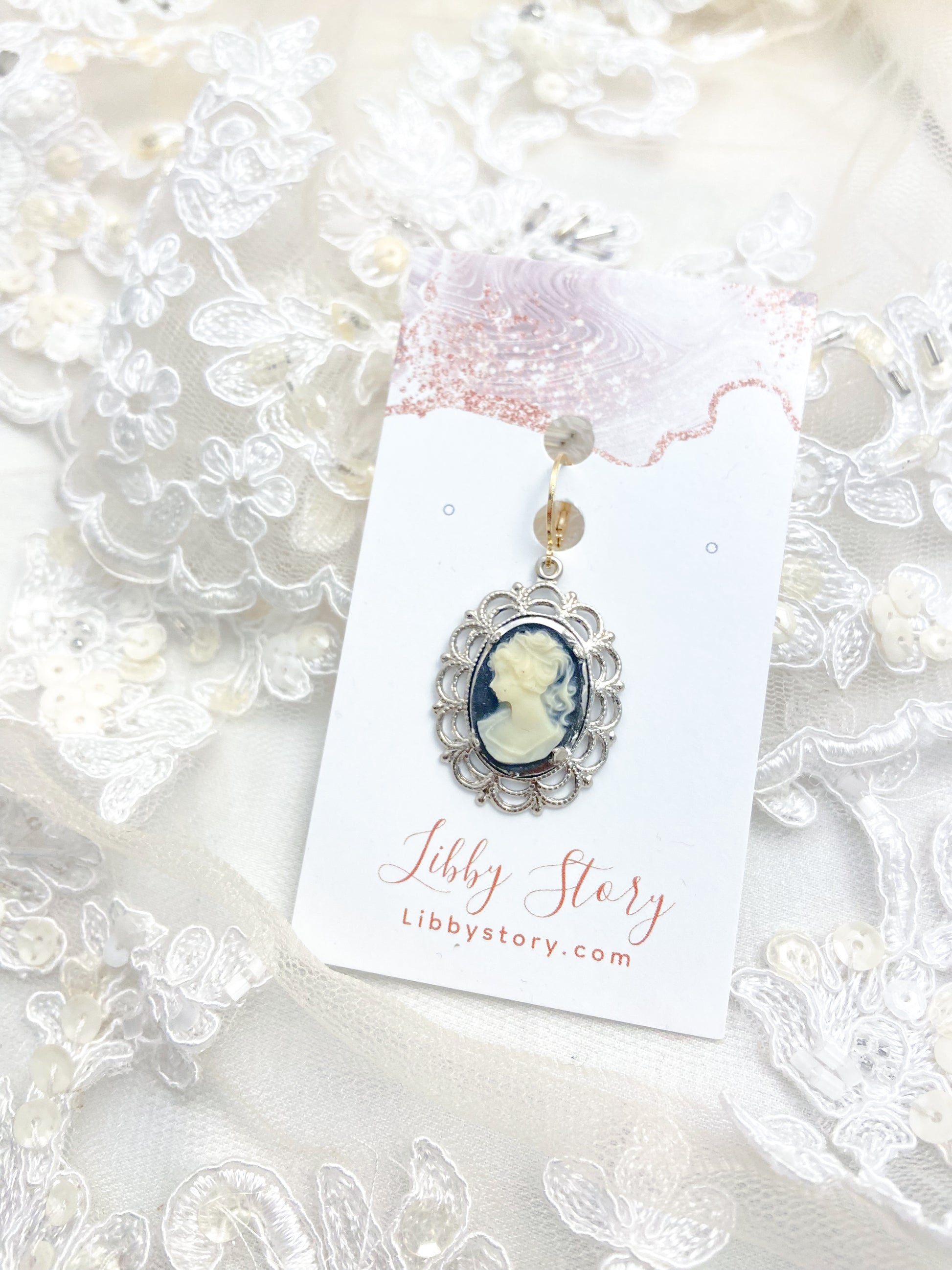Handmade vintage resin cameo on 18 kt gold plated stainless steel clip