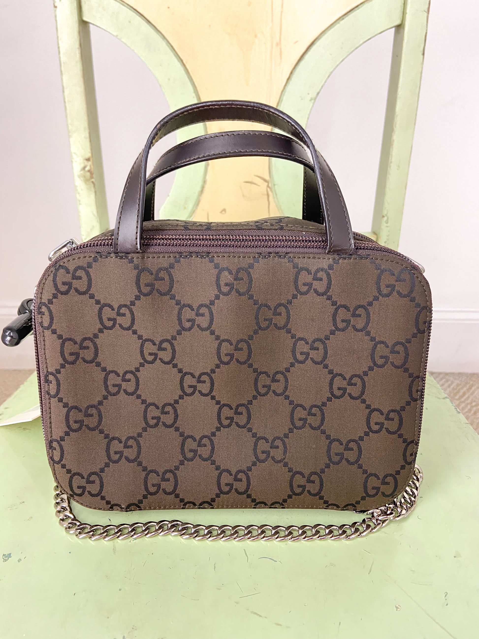 OOAK Vintage Dark Brown Gucci Purse with Bag Chain