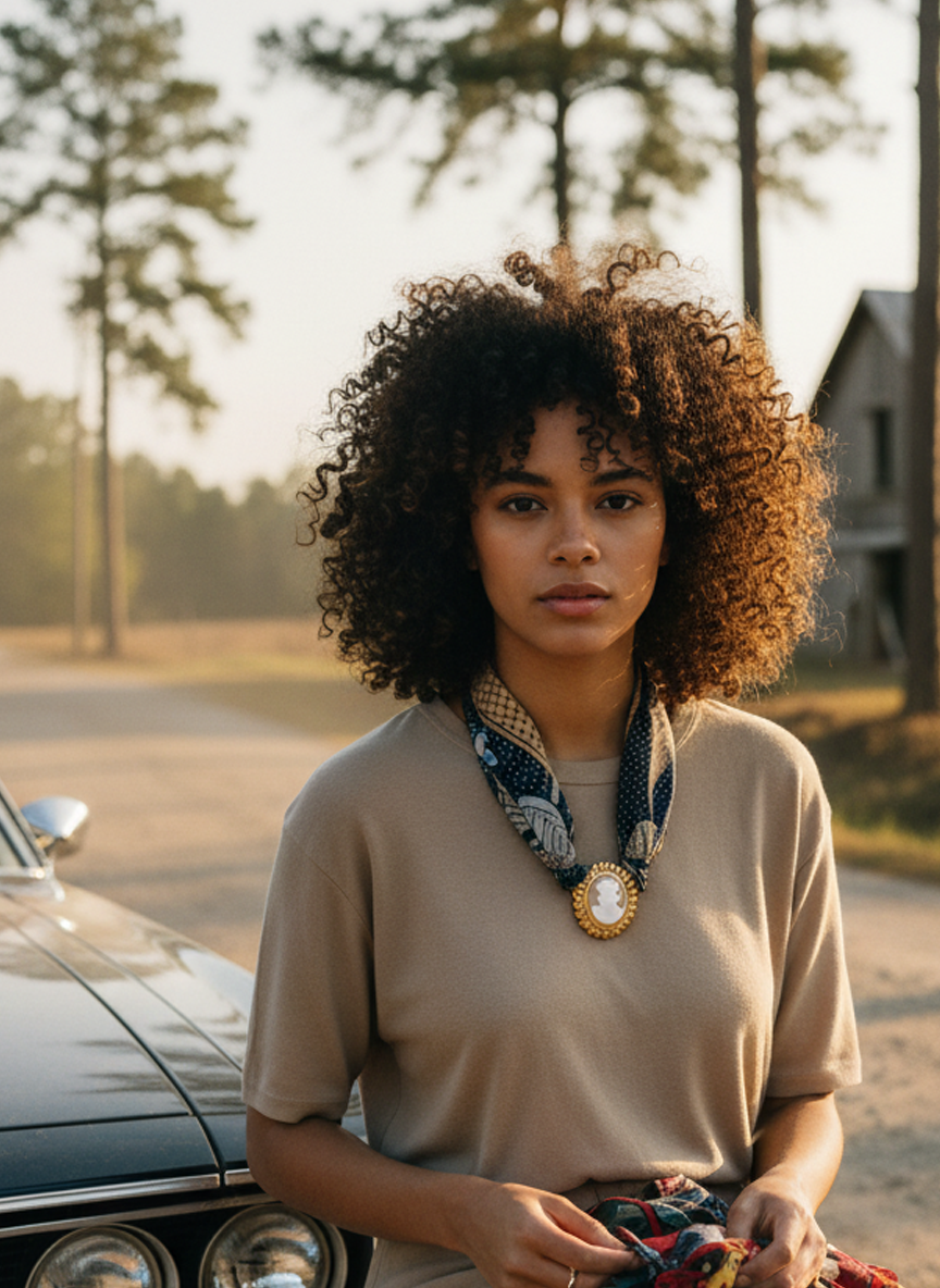 Vintage echo chiffon scarf and vintage earring converted into a pendant.