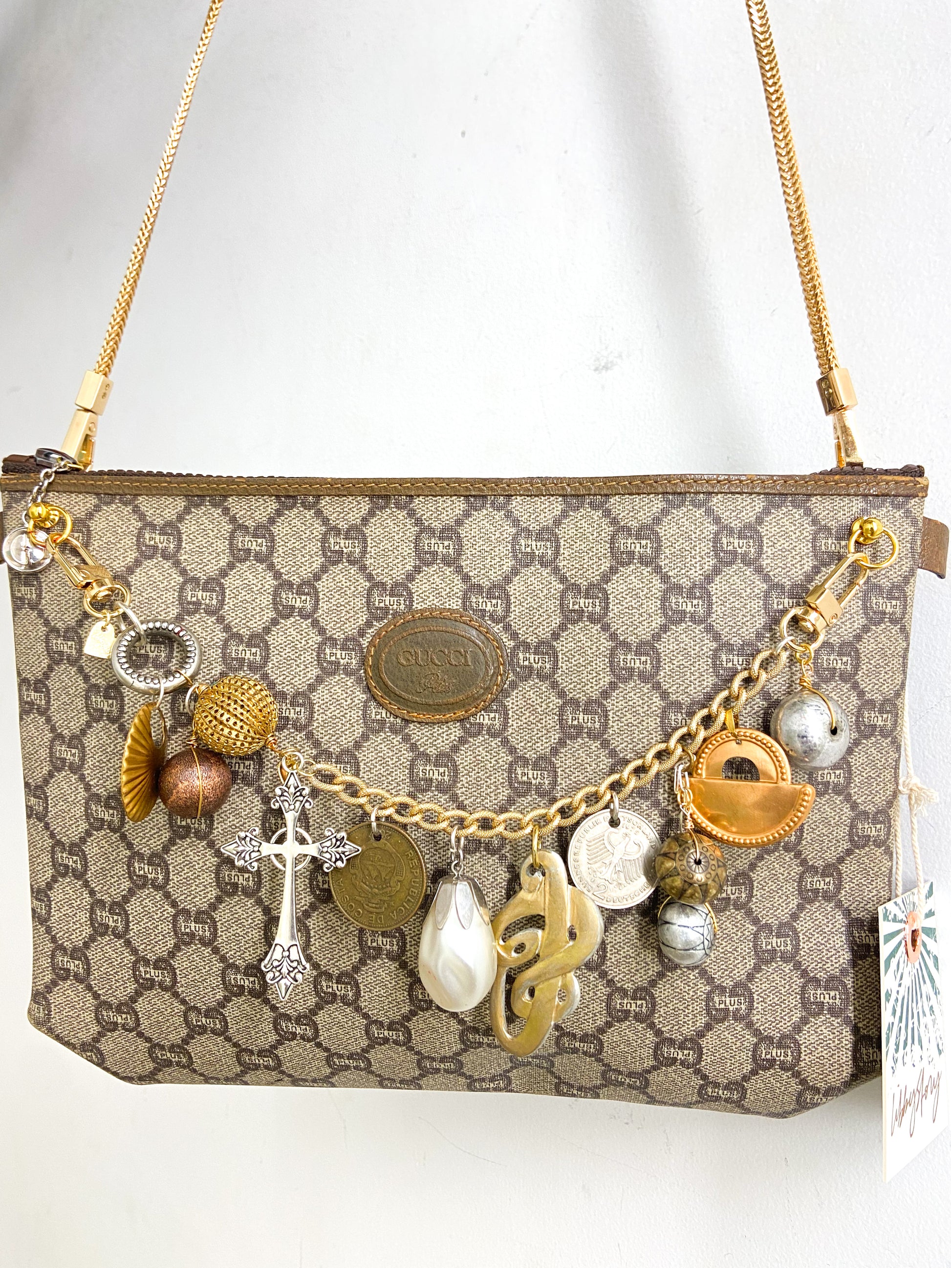 Authentic vintage Gucci clutch converted into a crossbody bag.