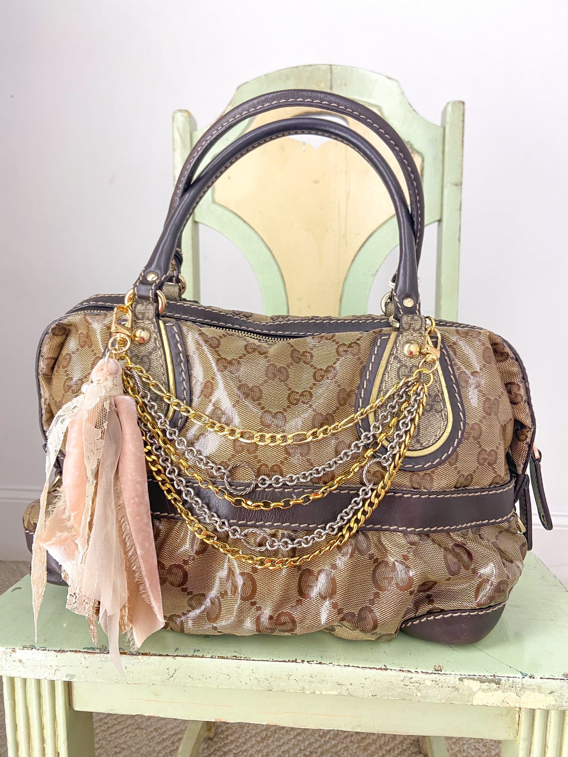 OOAK Vintage Gucci Purse with Chains and Ribbon Charm