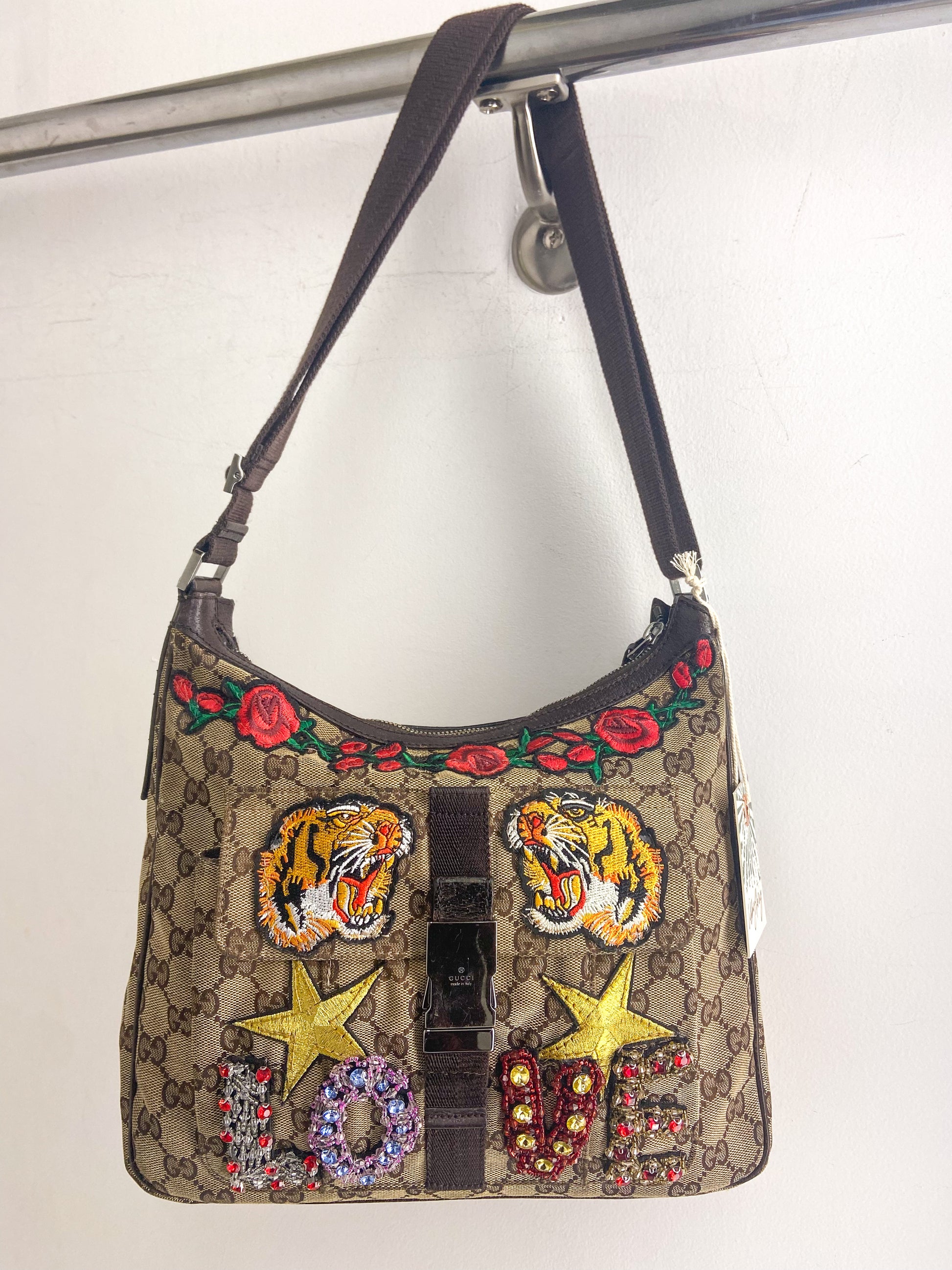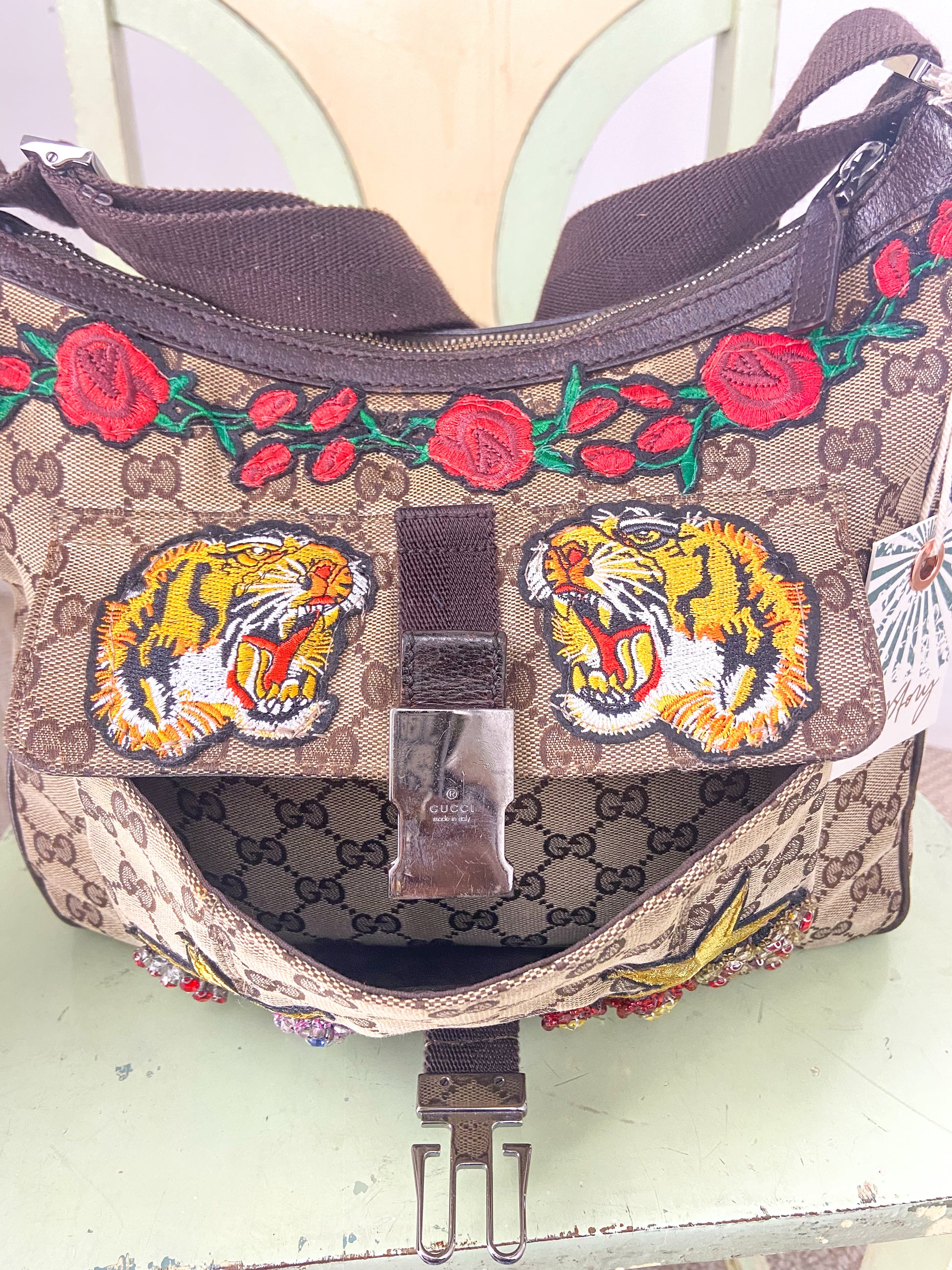 Authentic Vintage Gucci refurbished and upcycled with embroidered patches and hand sewn beaded patches