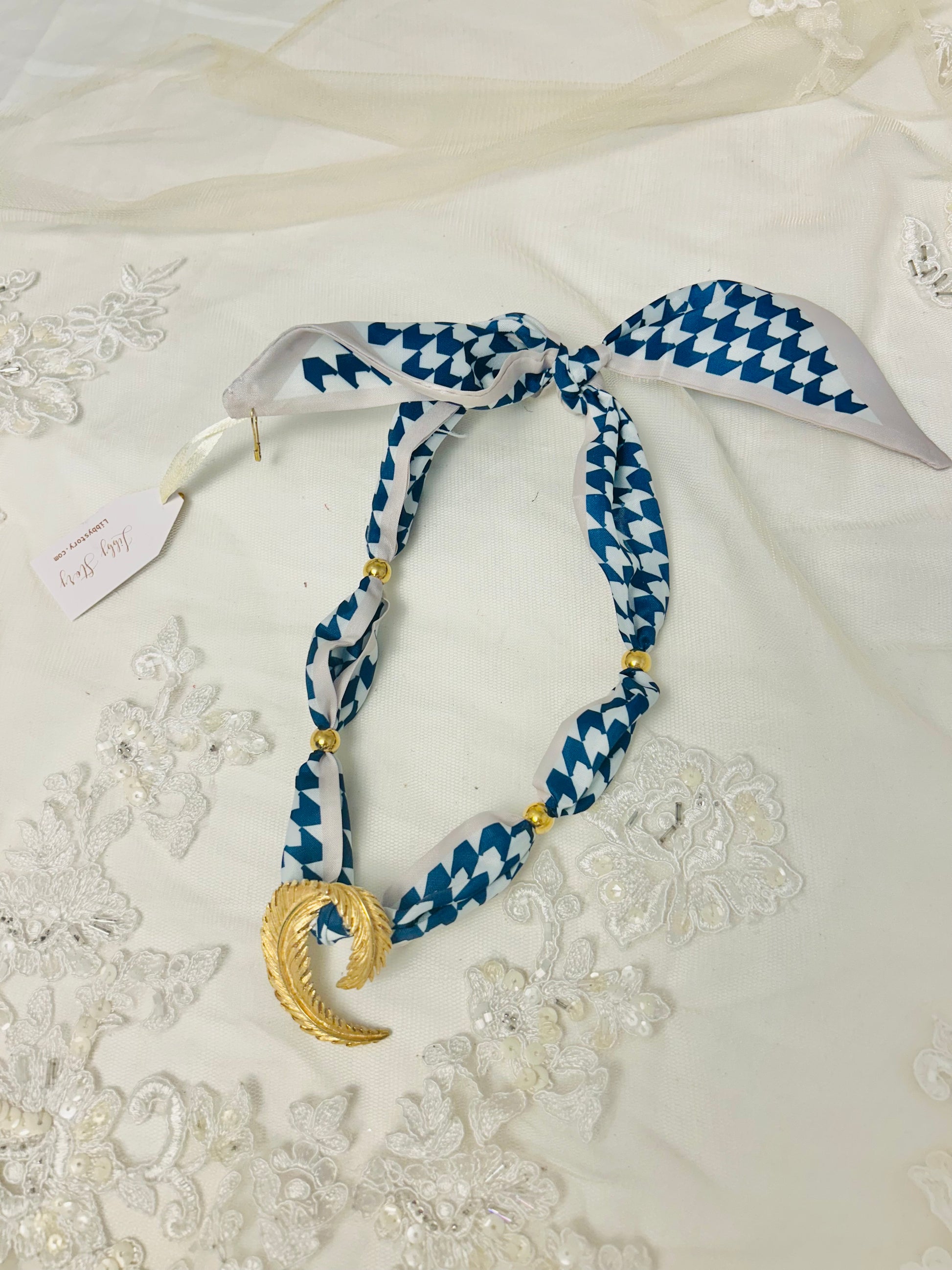 OOAK Vintage Leaf Broach Scarf Necklace
