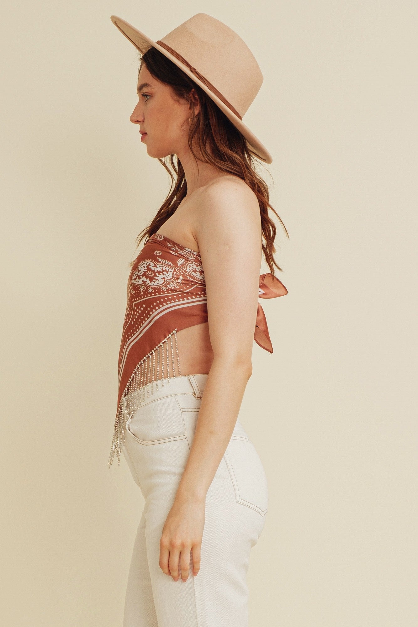 Paisley Print Rhinestone Trim Scarf Top