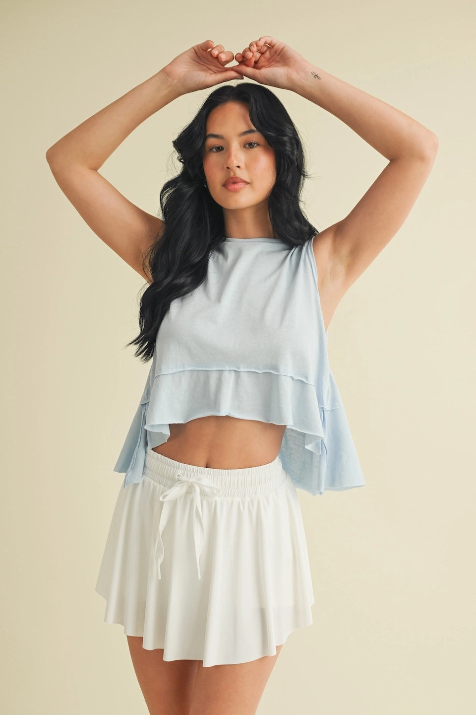 Lightweight design with breathable fabric. Relaxed fit with slight cropped length and raw seam detailing.