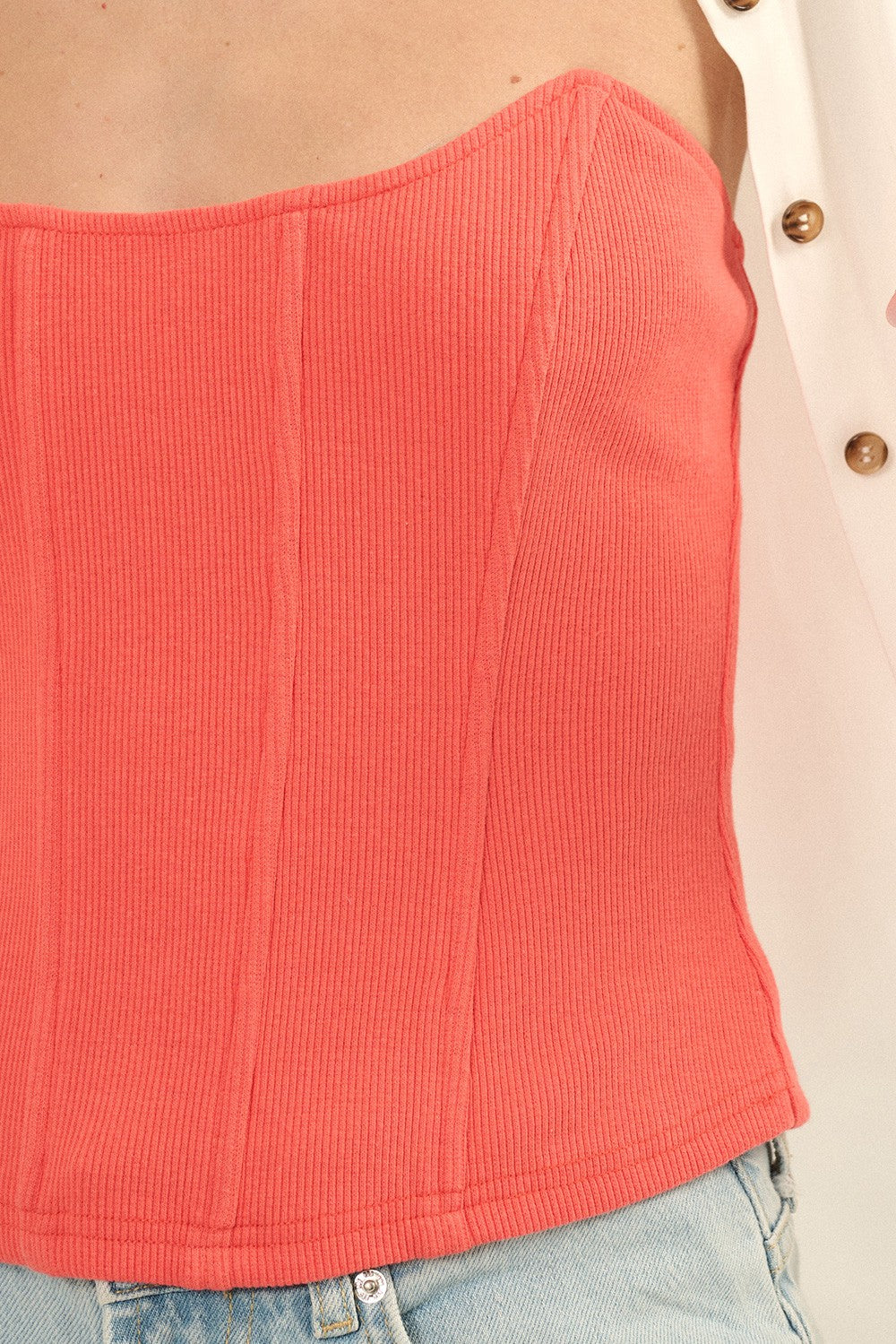 Ribbed Knit Strapless Corset Top