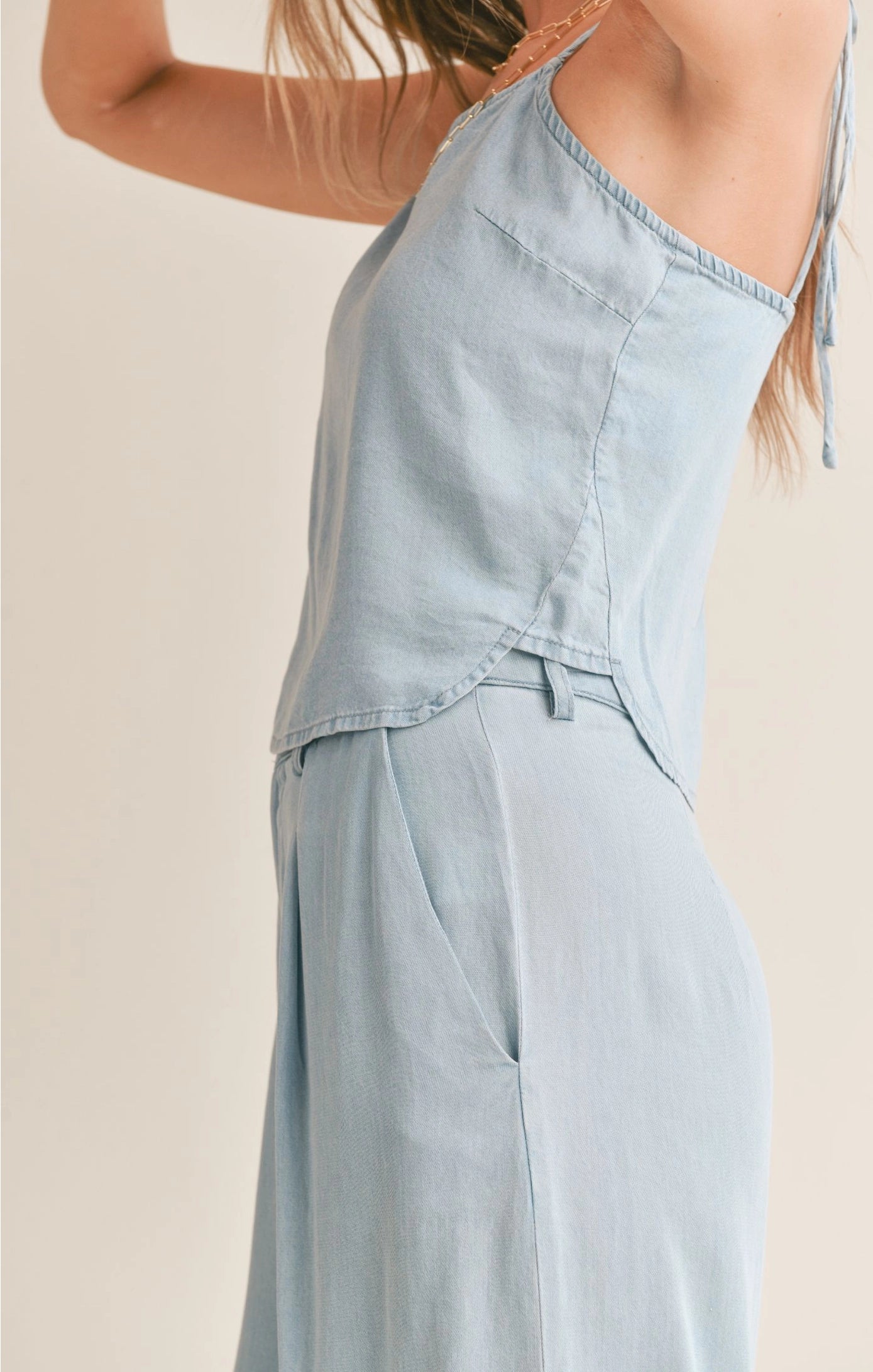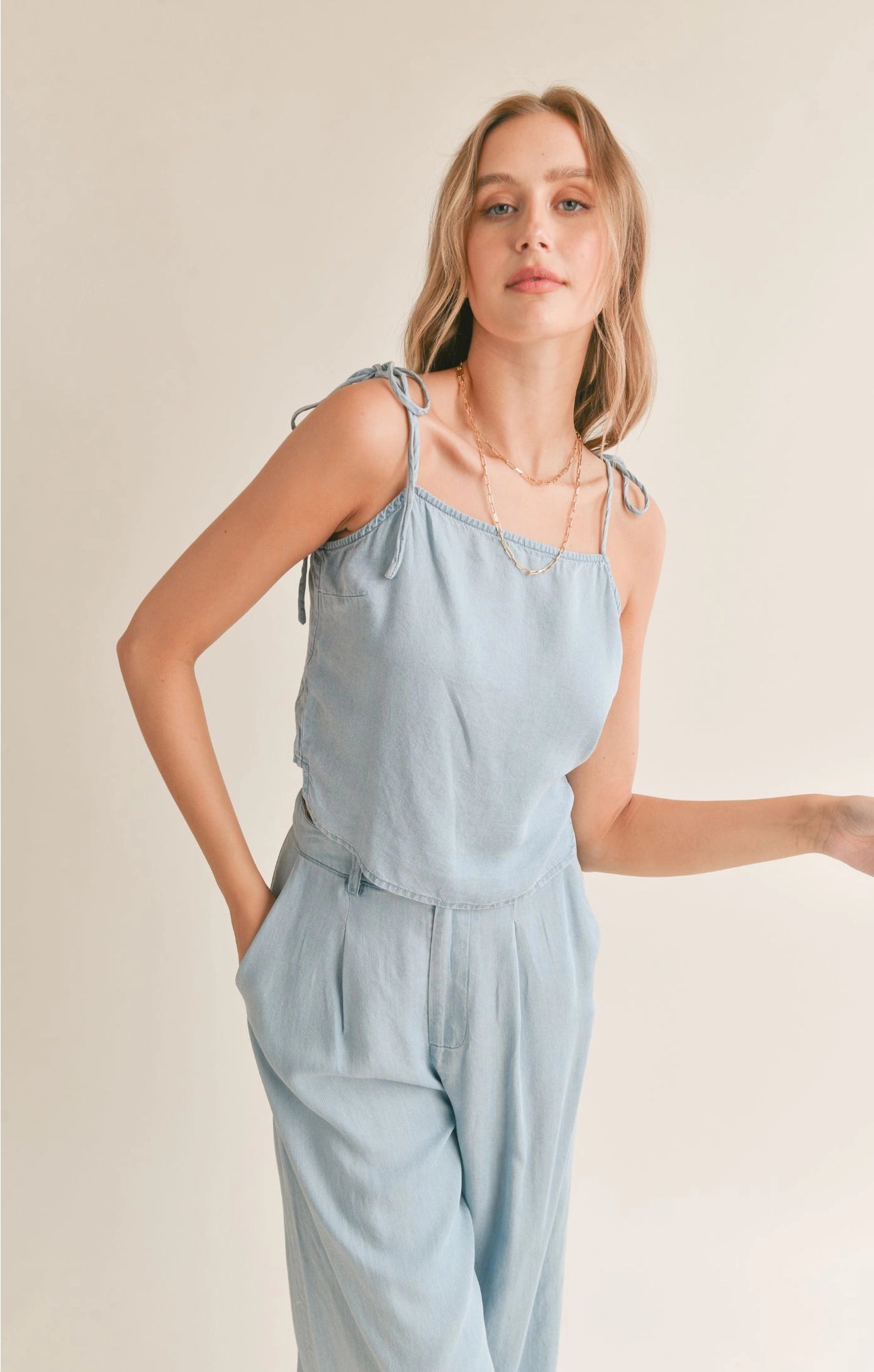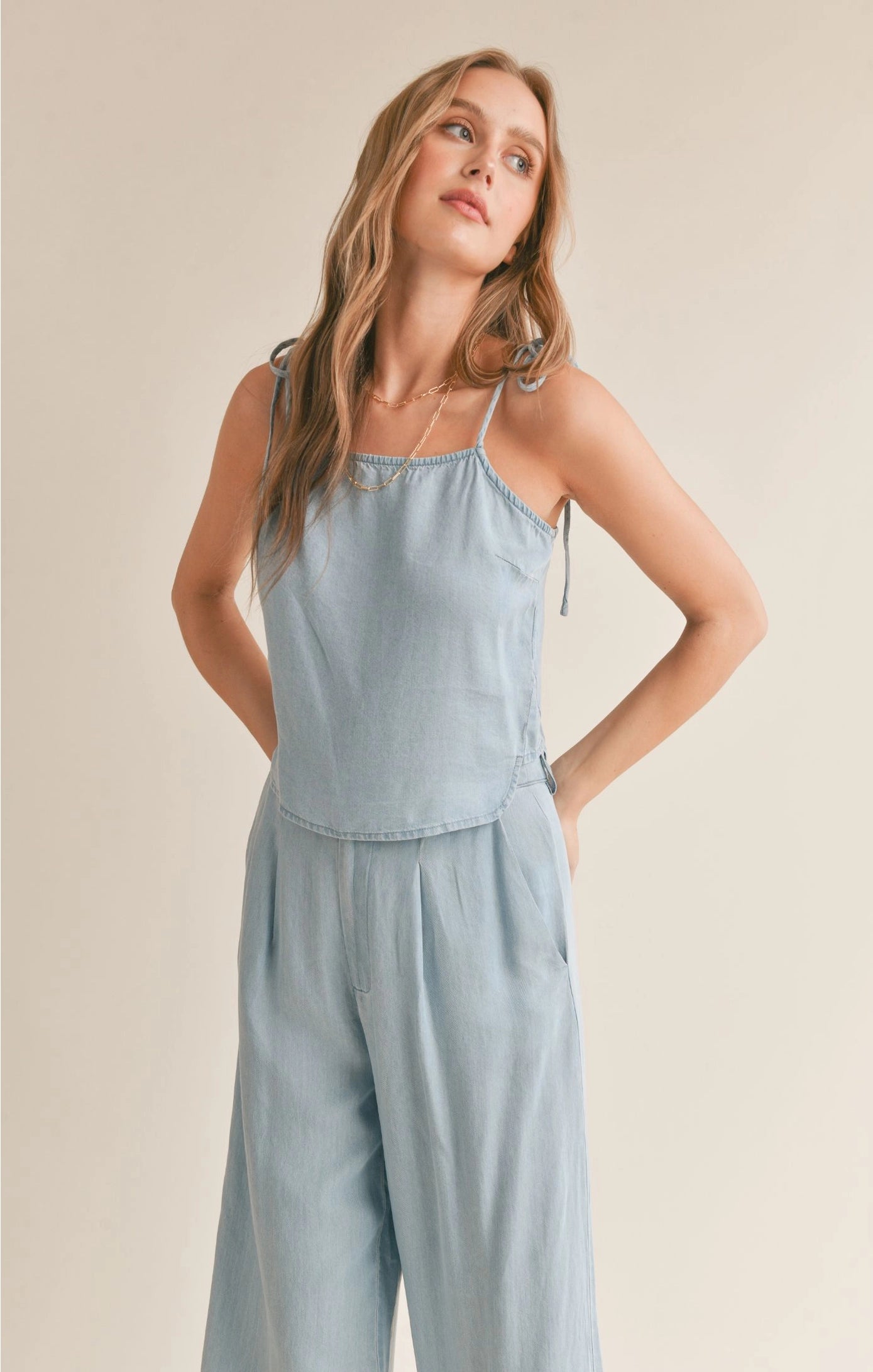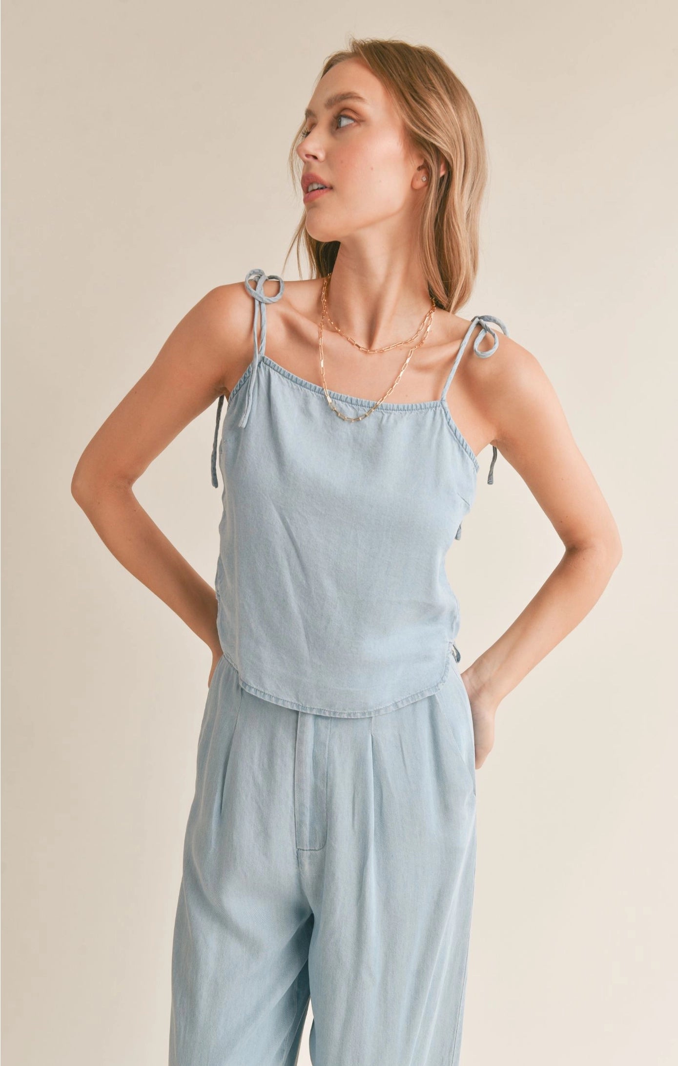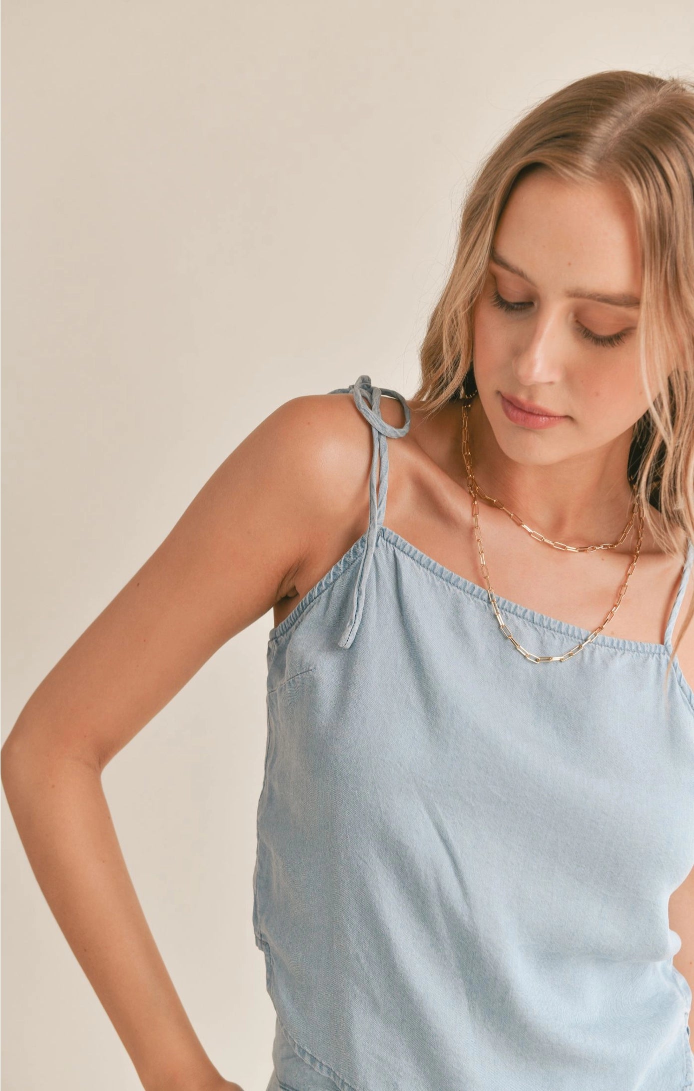 Sadie & Sage Soft Breeze Chambray Tank with tie straps