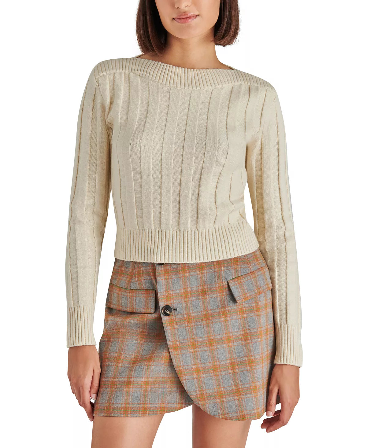 Layer on some style with Steve Madden's cropped sweater, designed with wide-rib knit.