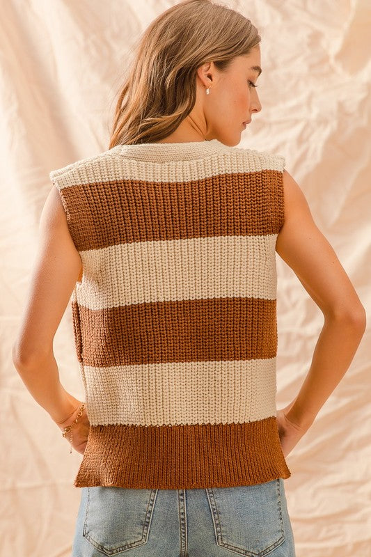 Stripped V Neck Sweater Vest Top