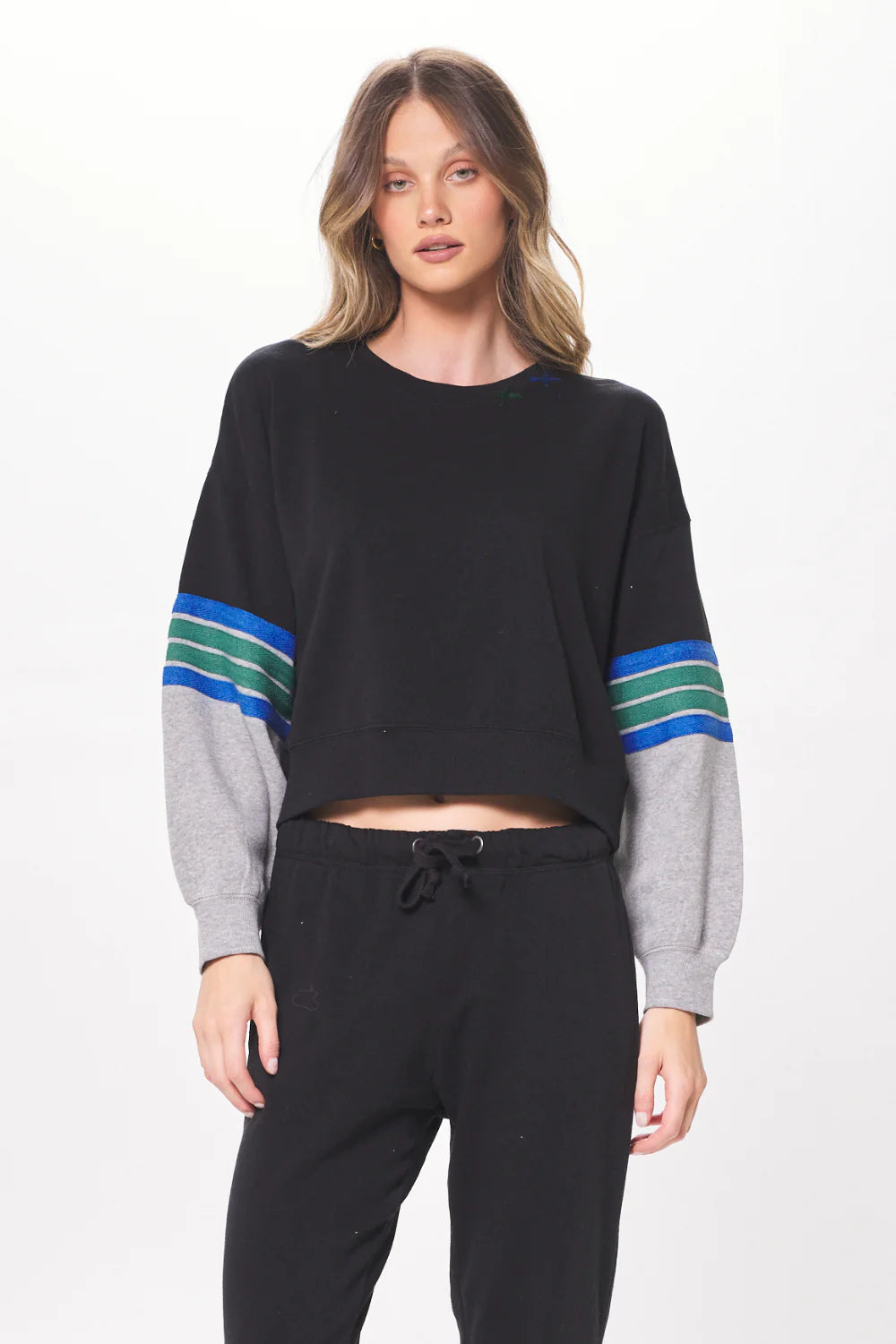The Black & Grey Fleece Crewneck w/ Twill Tape features:
