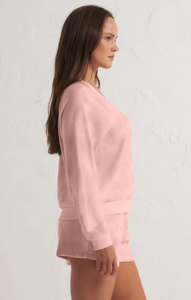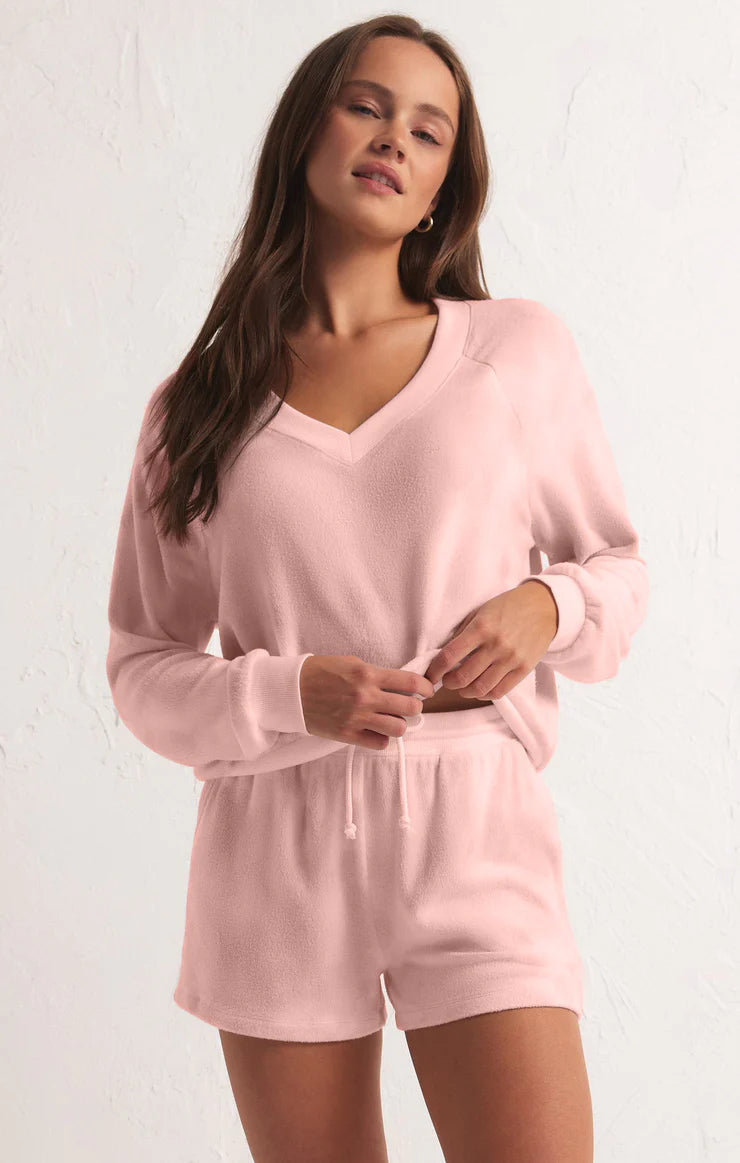 You've never felt cozy like the Candy Skies Long Sleeve Top. Made of our newest ultra plush fabric, this v-neck top is as flattering as it is comfy. Make a cute set with the Yummy Short and we promise you won't wanna wear anything else.