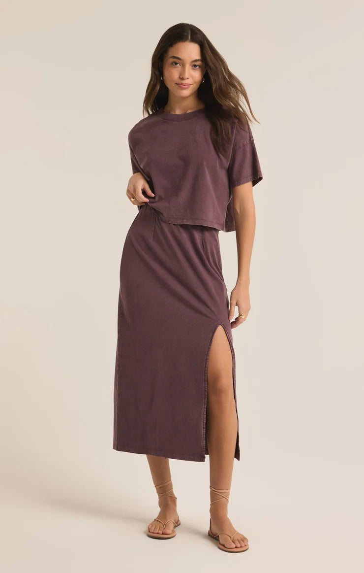 Fun and feminine, this chic skirt is made using our classic cotton jersey fabric, given a special wash for added softness. It features a high, flirty slit to show off a little leg and is one half of one of our most popular sets.